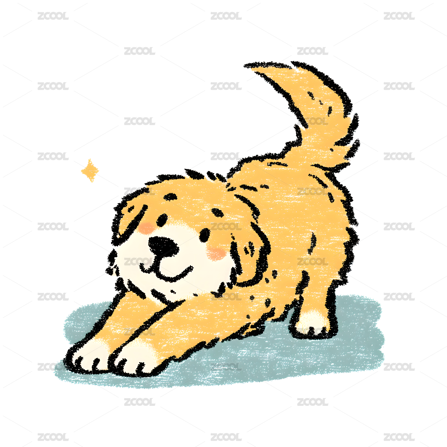 金毛犬,狗狗,Q版,手绘插画,治愈风,宠物插画,动物插画,萌宠,卡通风,趴着