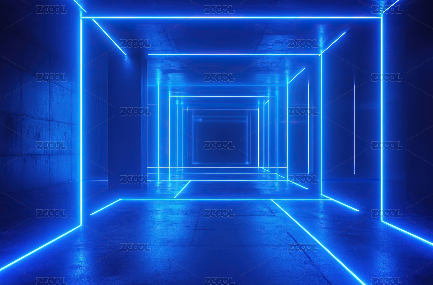 蓝色,科技,未来,深蓝,发光,对称,冷峻,室内,排列,墙壁