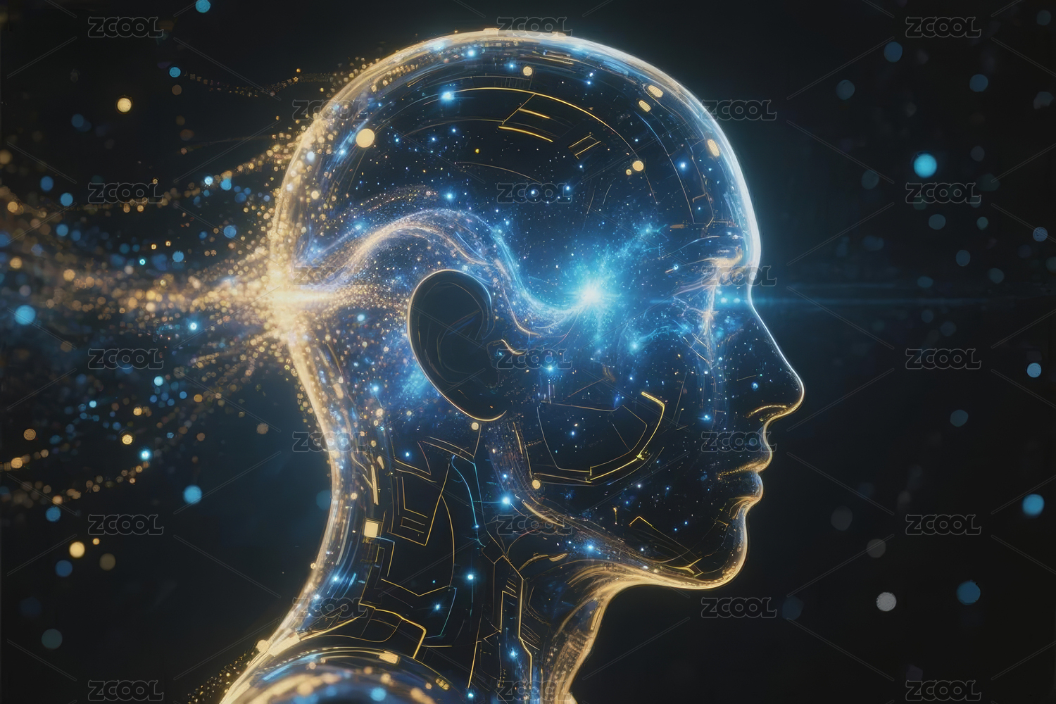 发光的点和线组成的人脑概念,人工智能AI