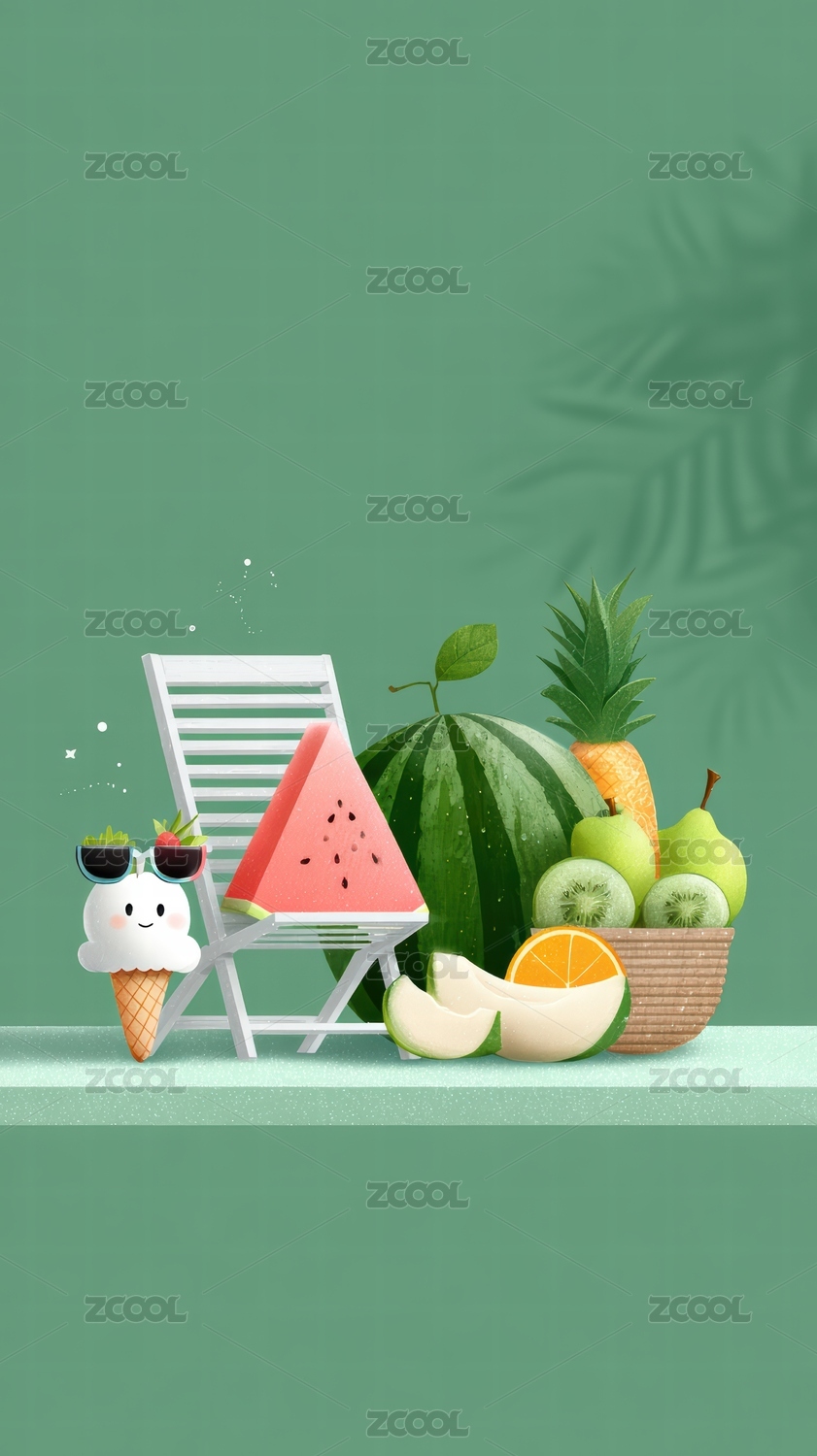 果实,绿色,插画,渐变,背景,自然,植物,水果,清新,简洁