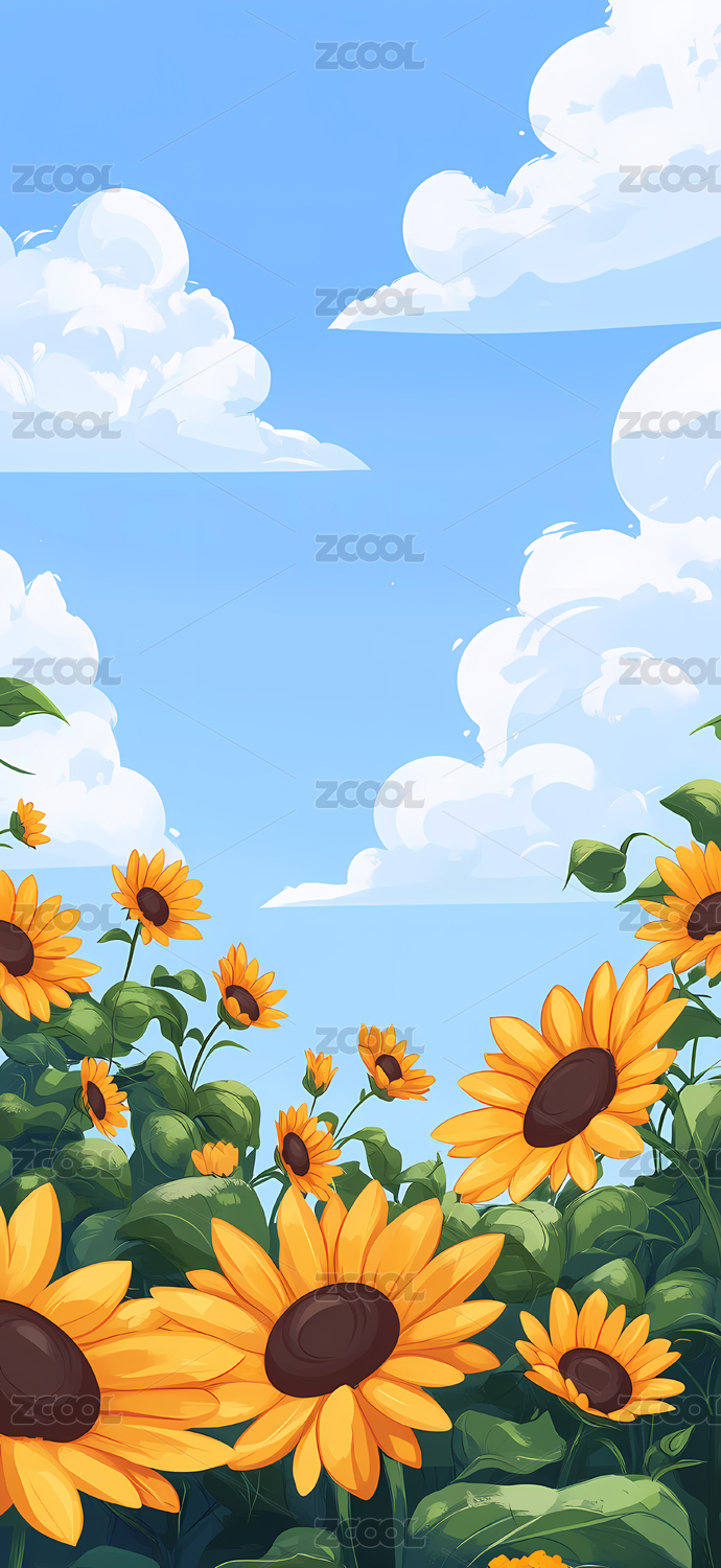 向日葵与渐变天空