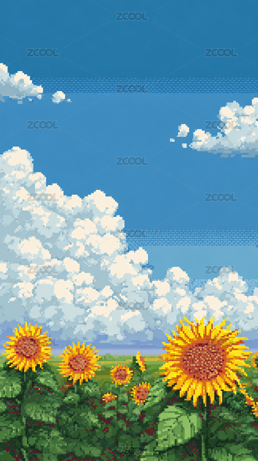 像素风的向日葵花海