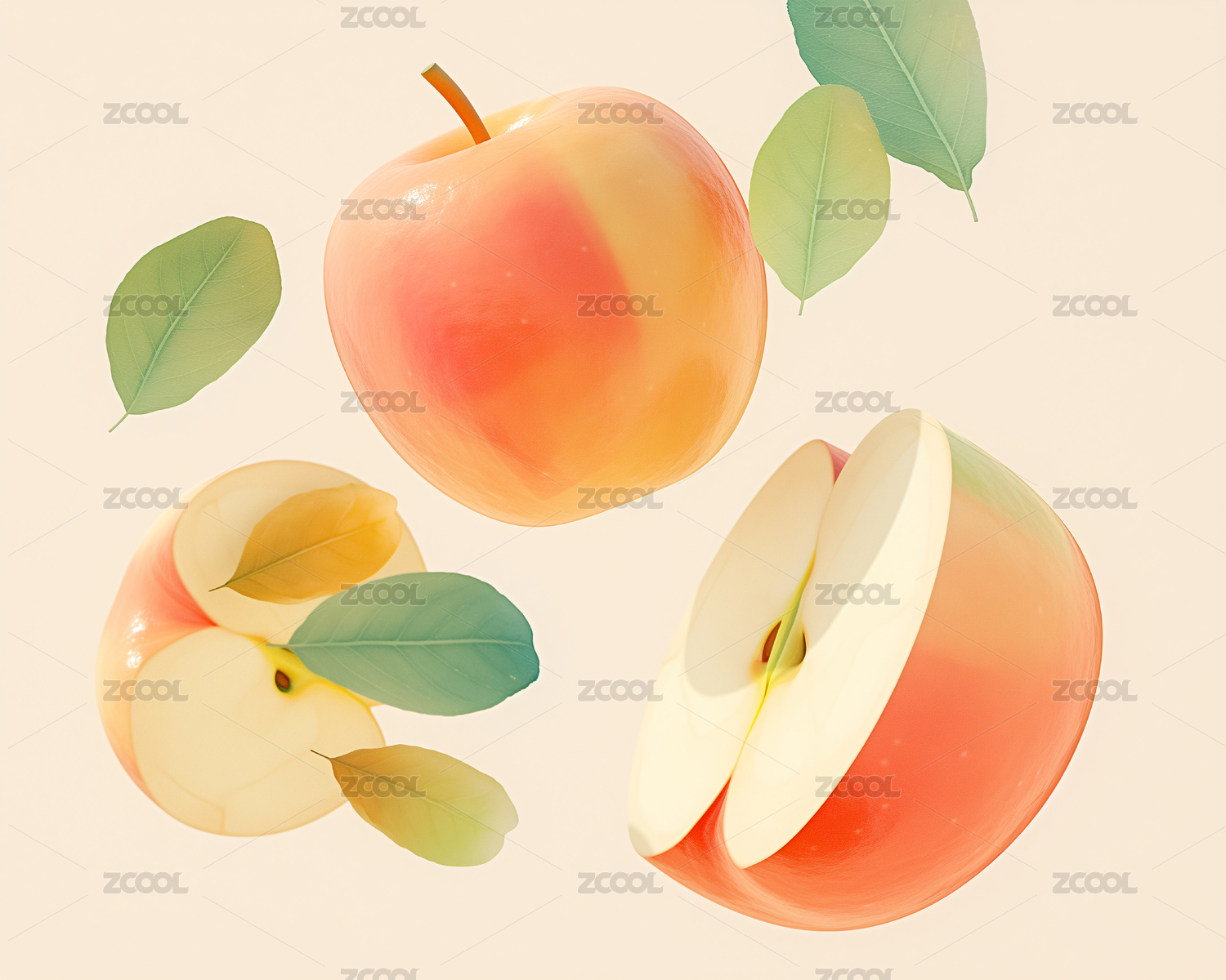 苹果切片与渐变背景