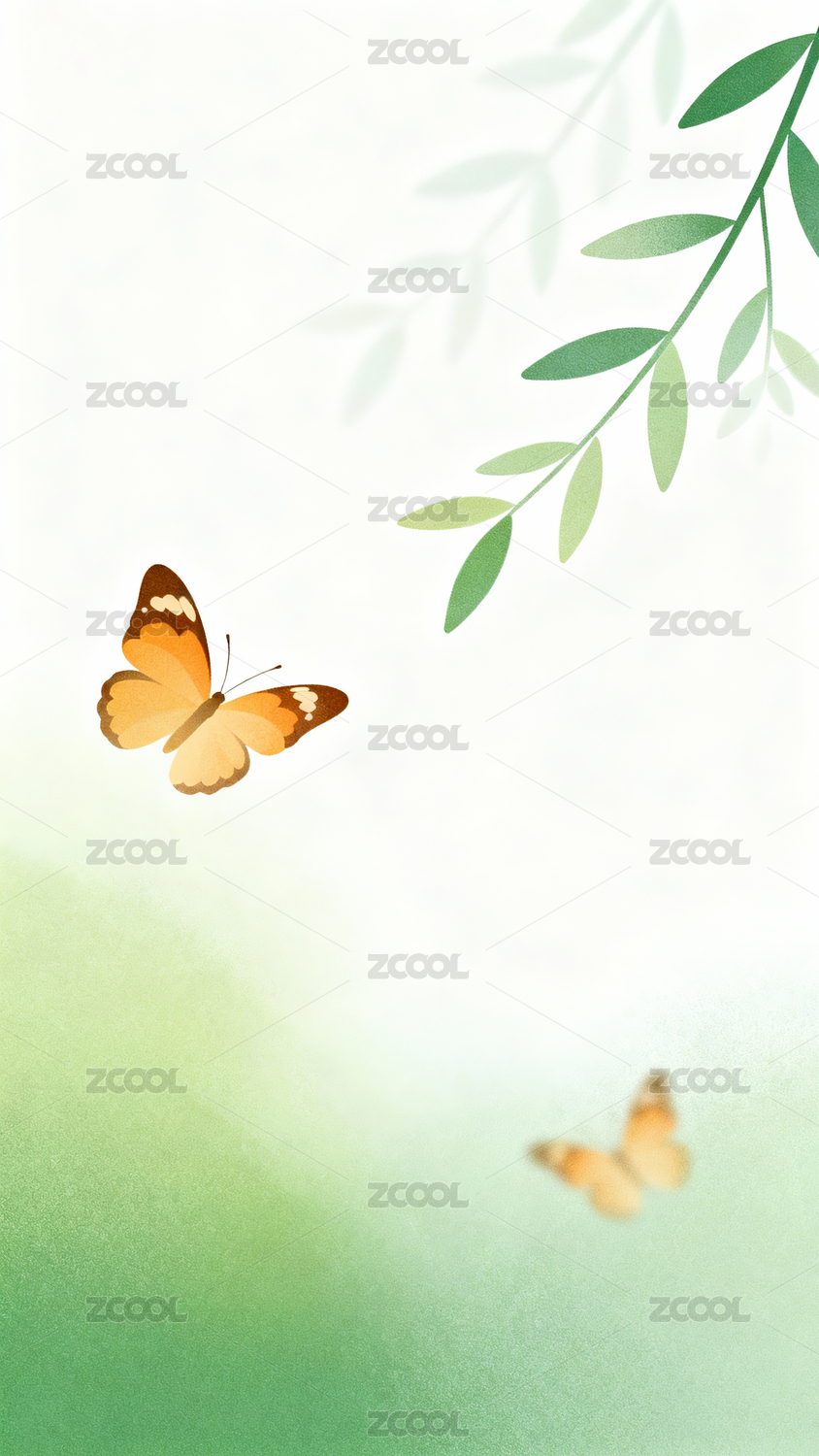古风淡绿色蝴蝶