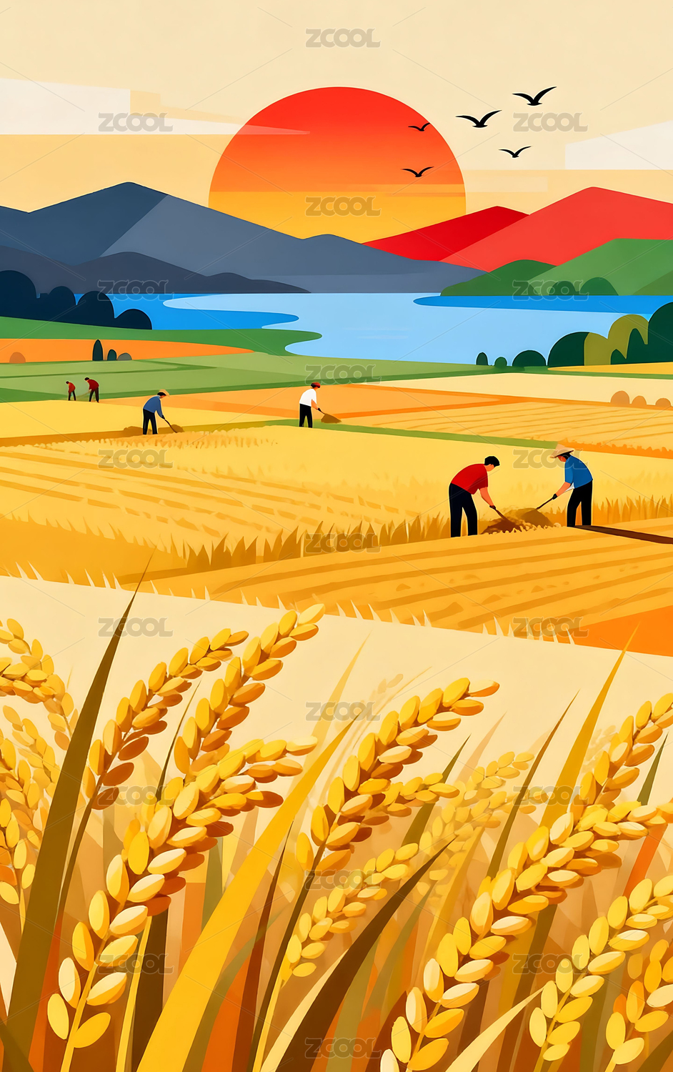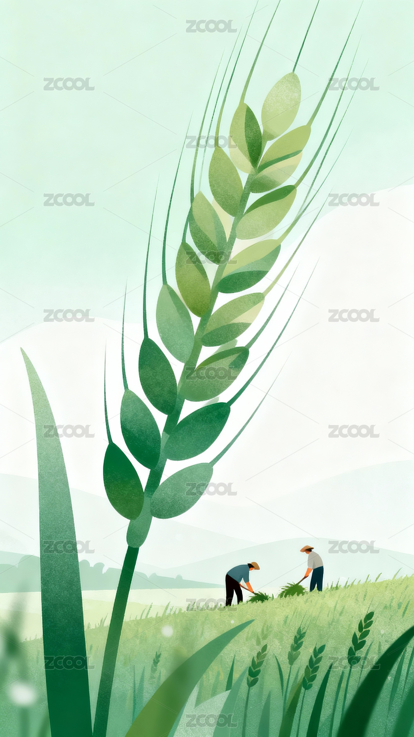 人物,绿色,插画,简约,线条,色彩,背景,清新,夏日,植物