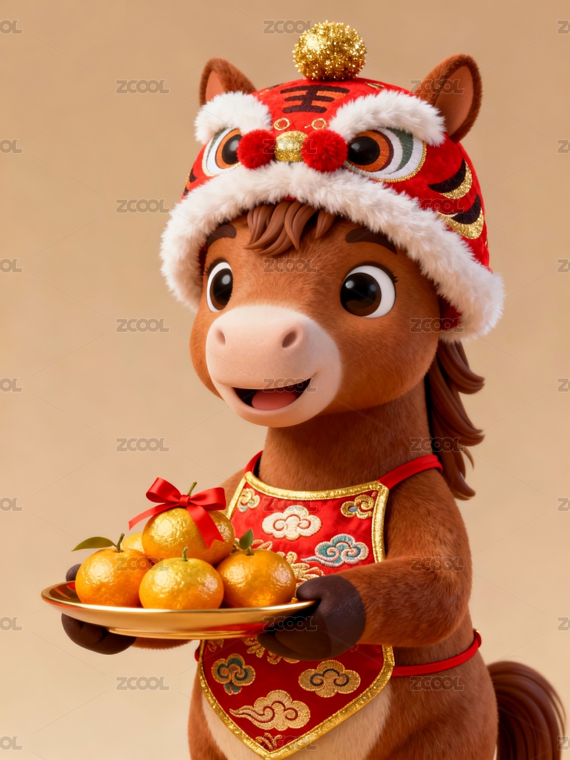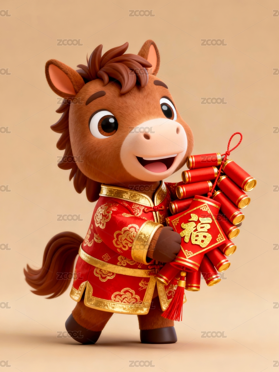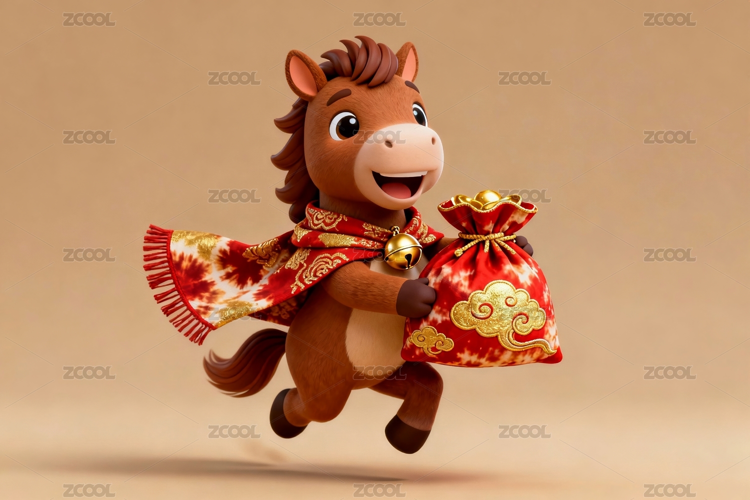 主视觉,商业,壁纸,萌马,新年,多场景,红包,礼盒,唐装,卡通