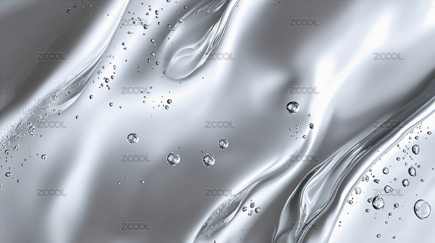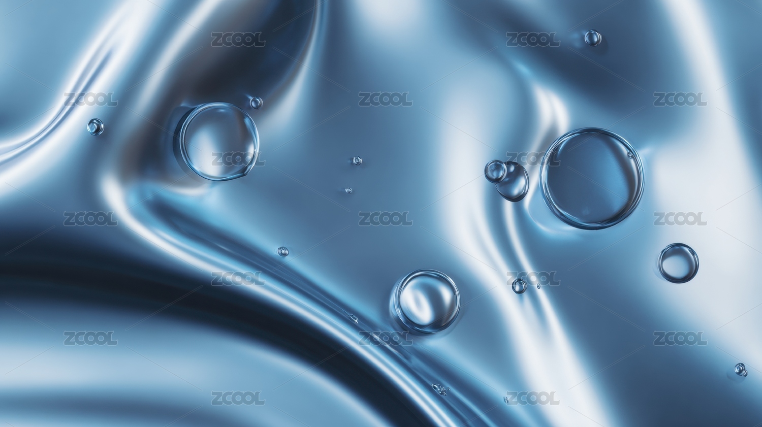 晶莹水珠漂浮于柔滑蓝色绸缎之上