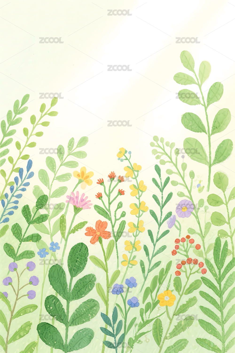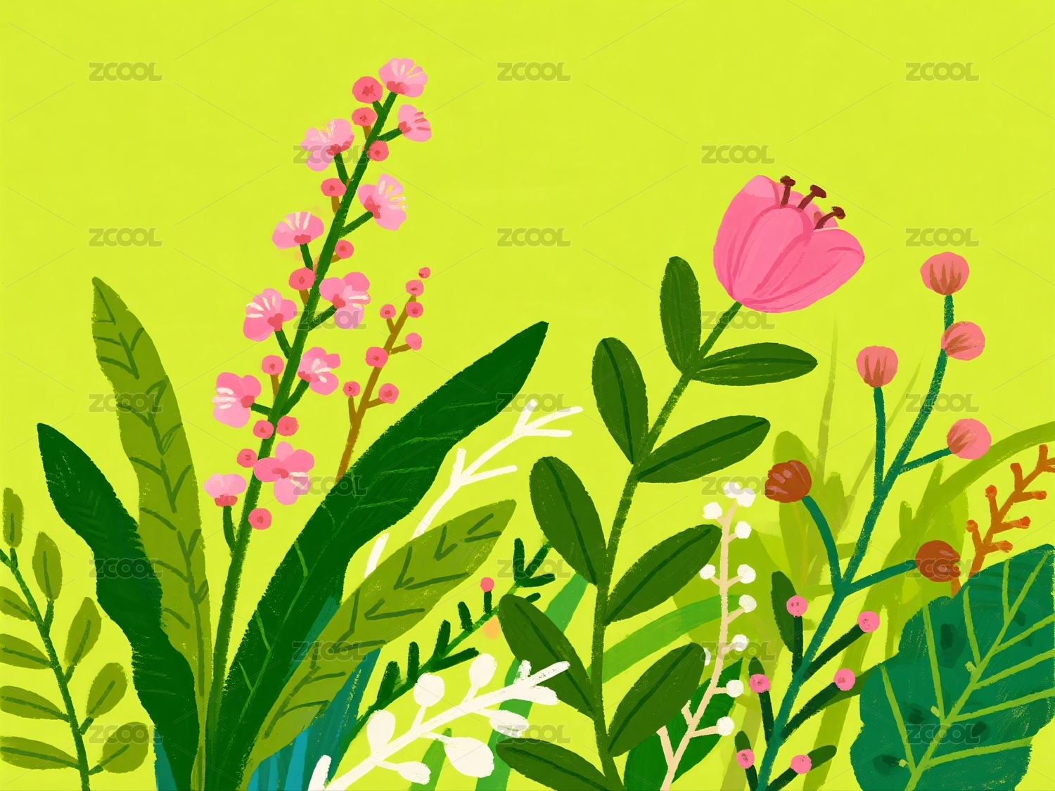 鲜花,插画,草丛,花丛,花朵,春天,清新,美丽,美景,户外