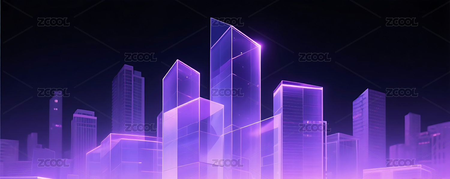 紫金色几何玻璃城市建筑黑色背景