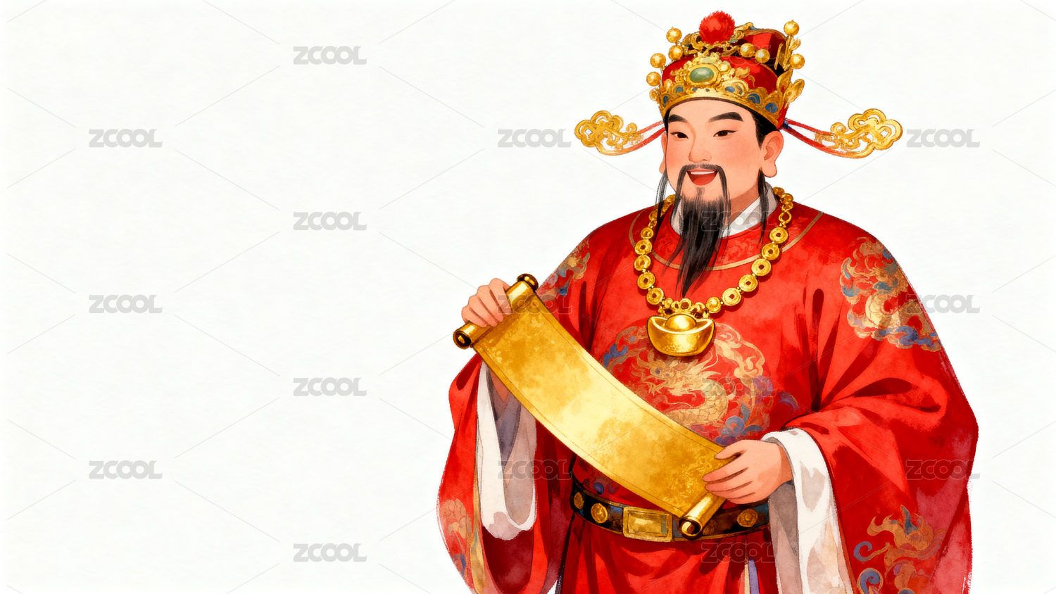 财神爷手持卷轴金元宝