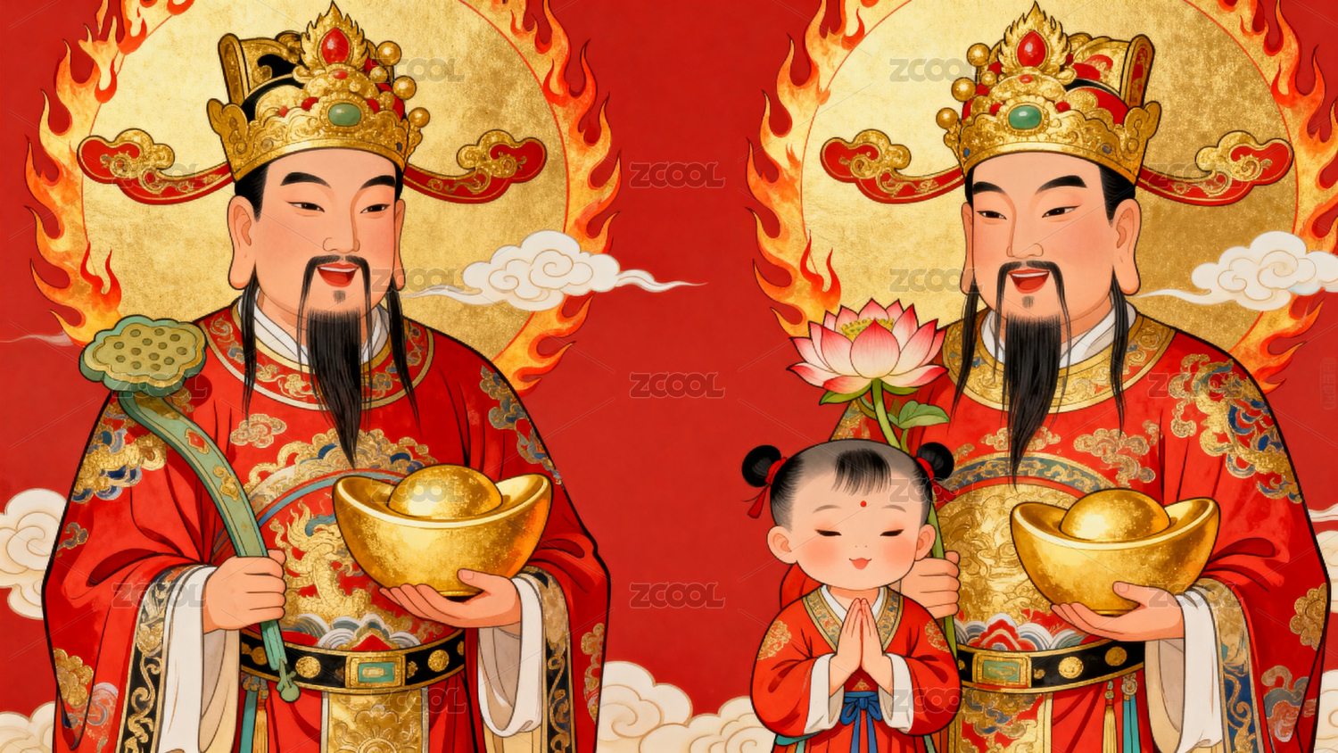 中国传统财神形象对比展示