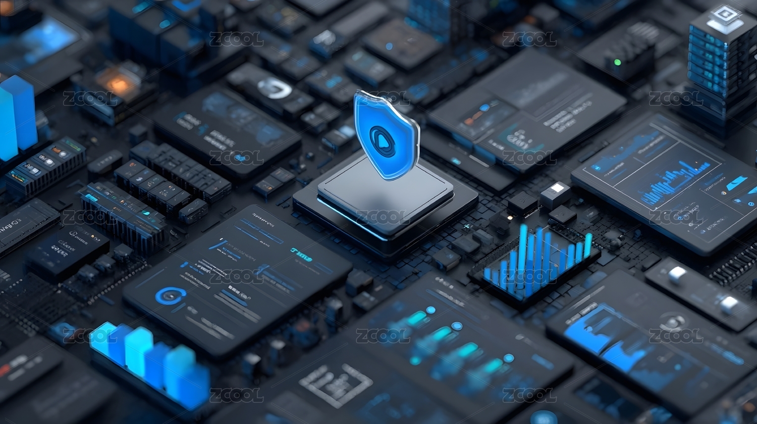 圆形,蓝色,设计,现代,简约,发光,科技,方块,白色,数据