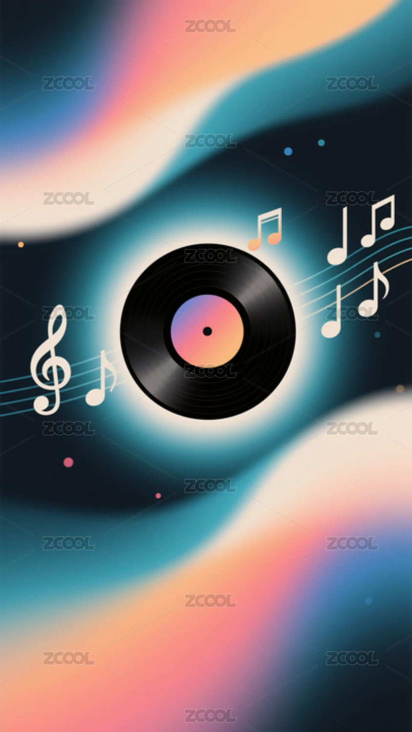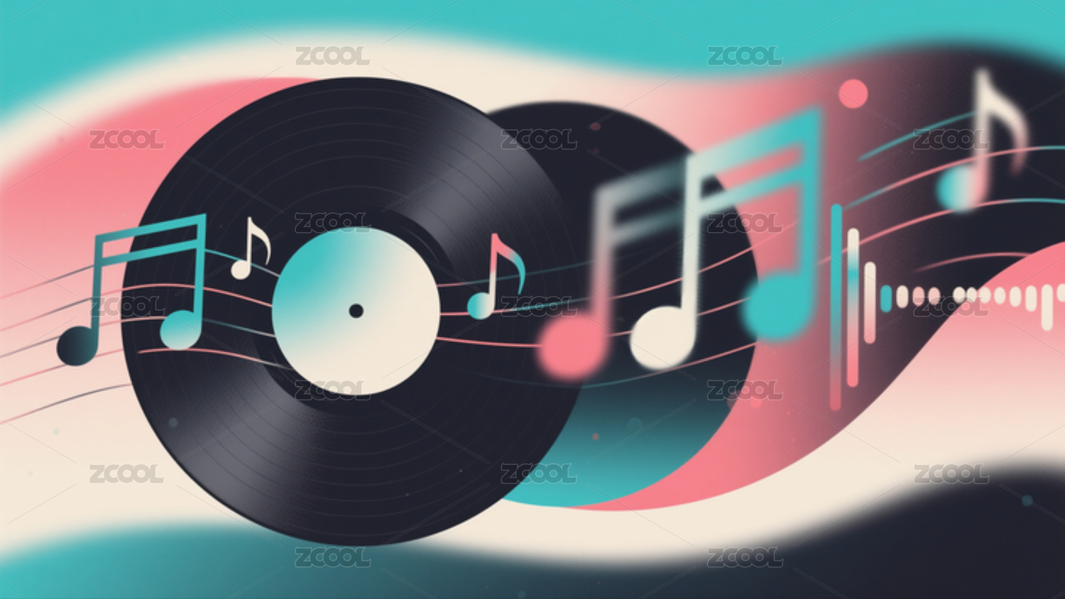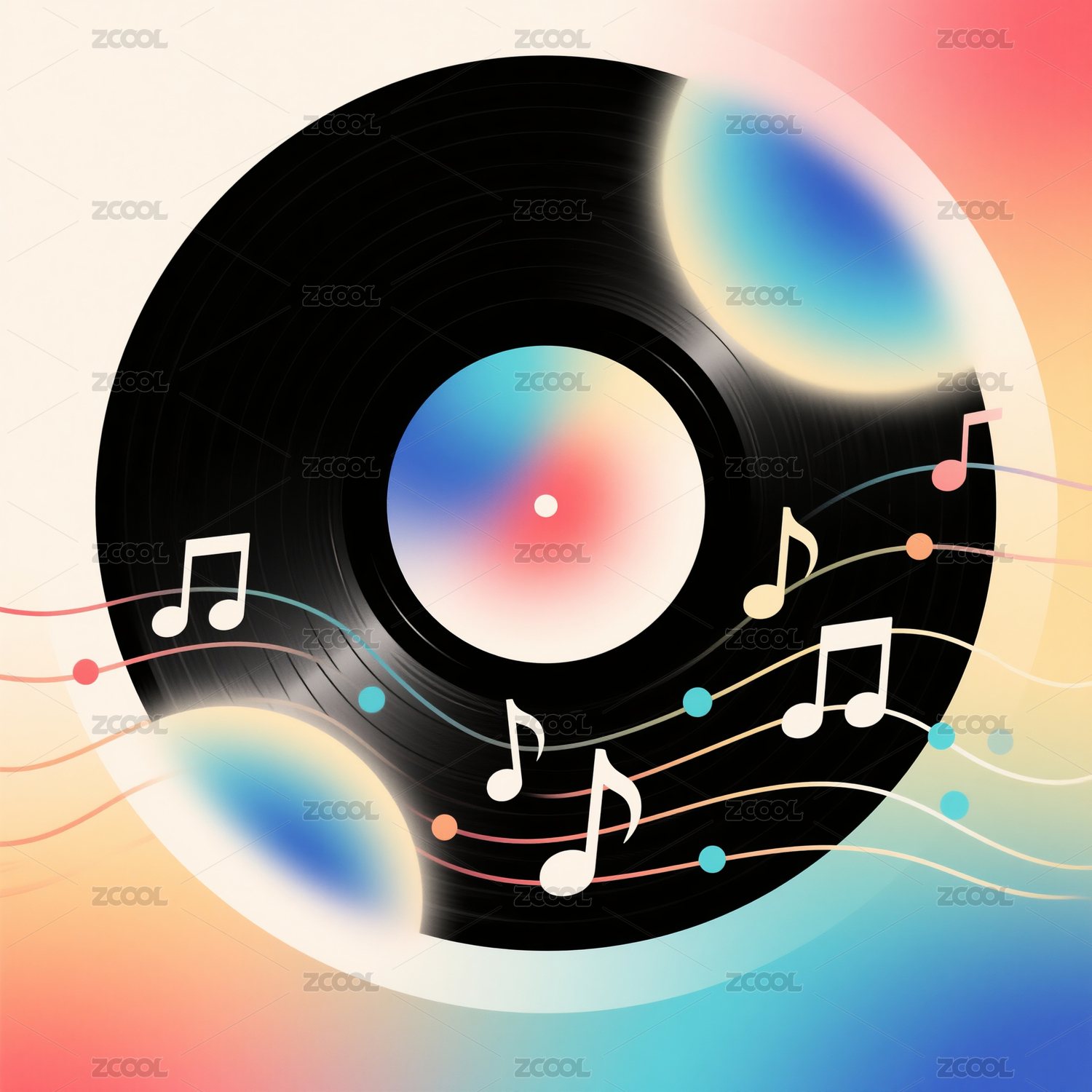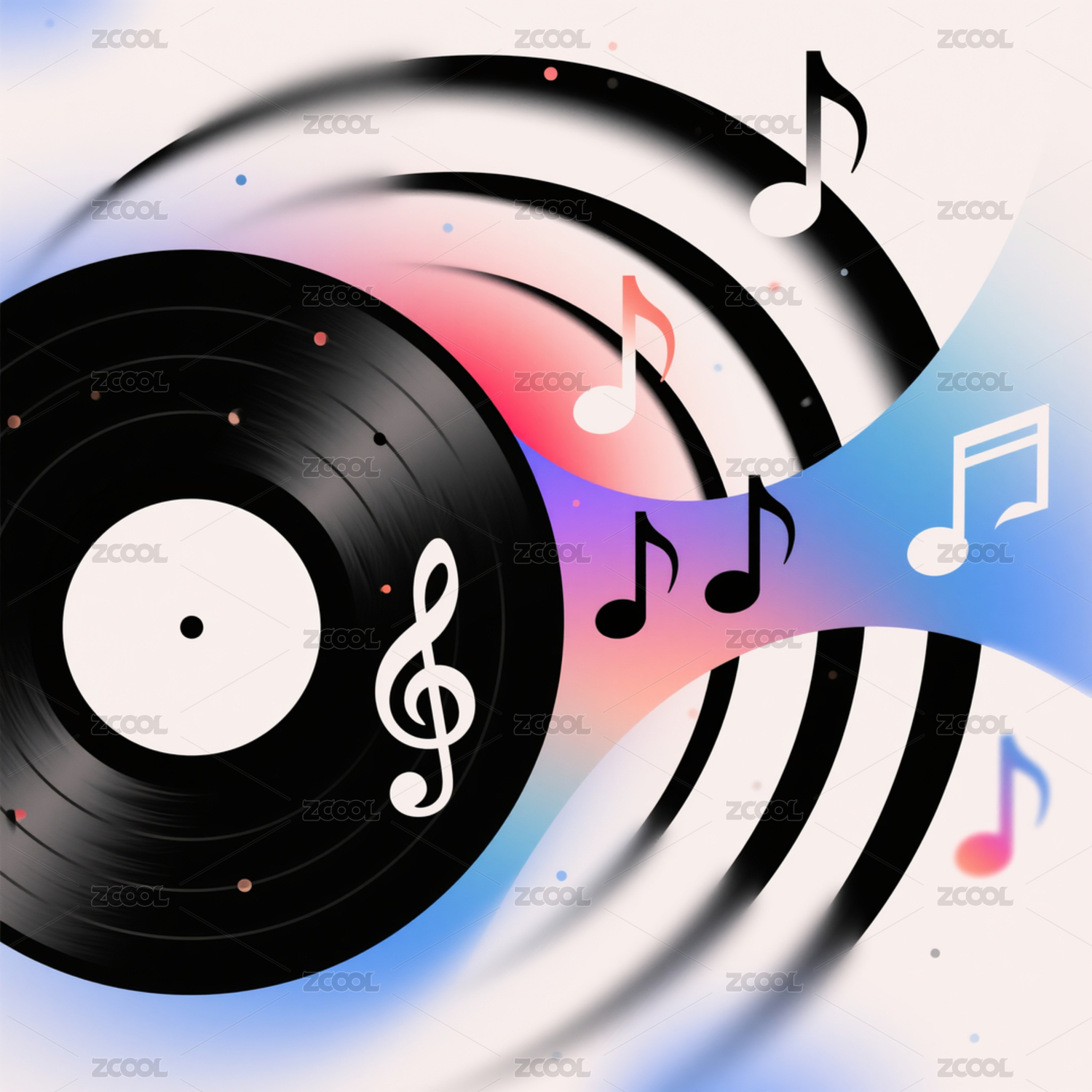 黑胶唱片,音符,音乐,环绕,声波,节奏,渐变,弥散,扁平化,半透明