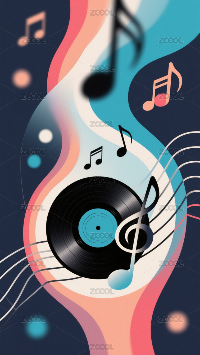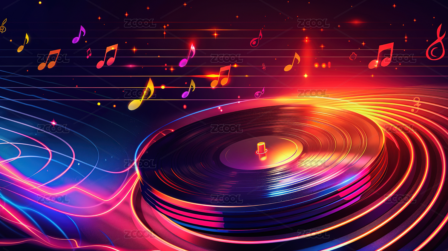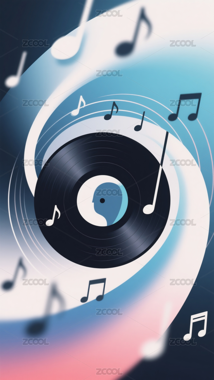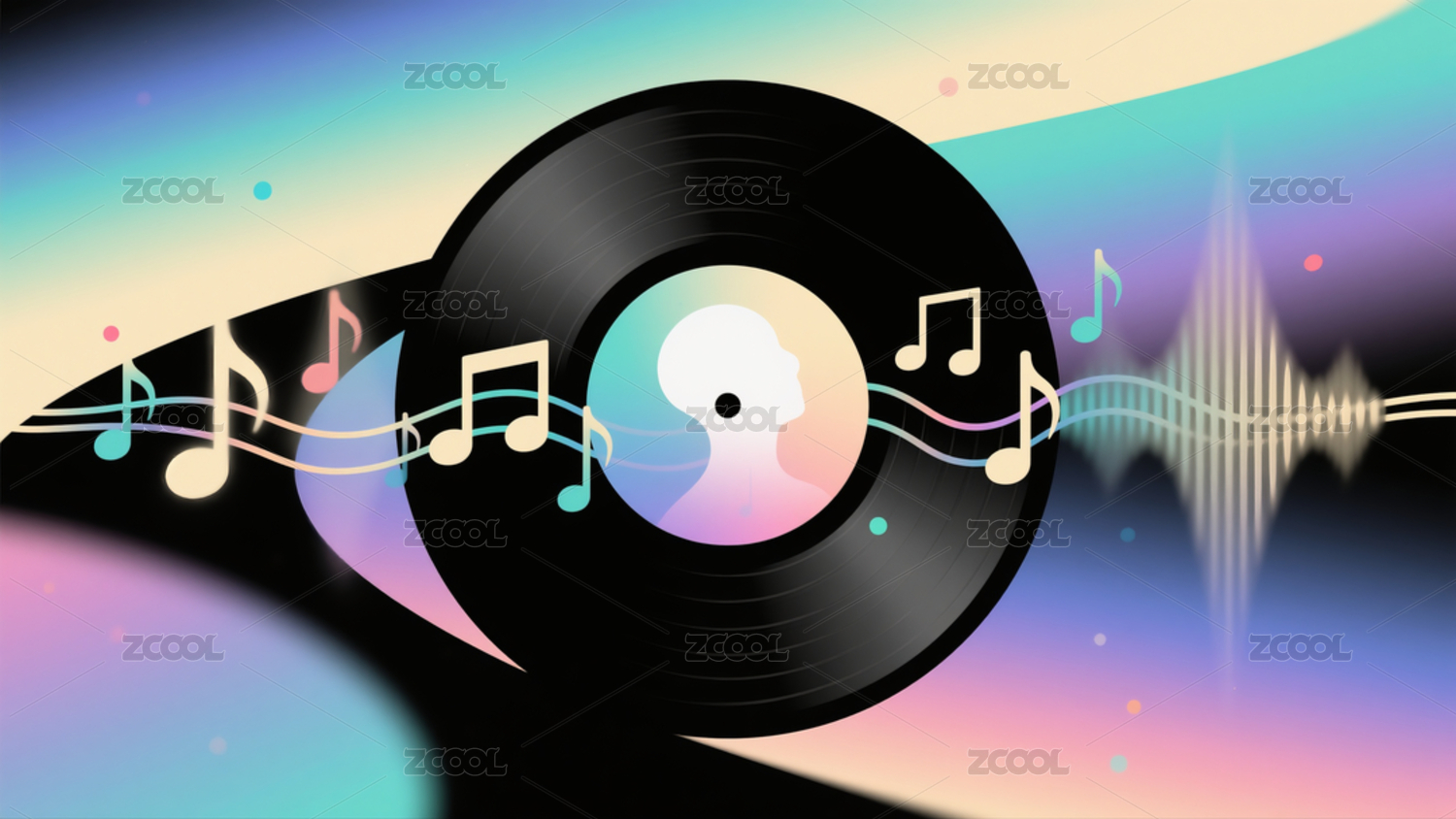 黑胶唱片,音符,音乐,环绕,声波,节奏,渐变,弥散,扁平化,半透明
