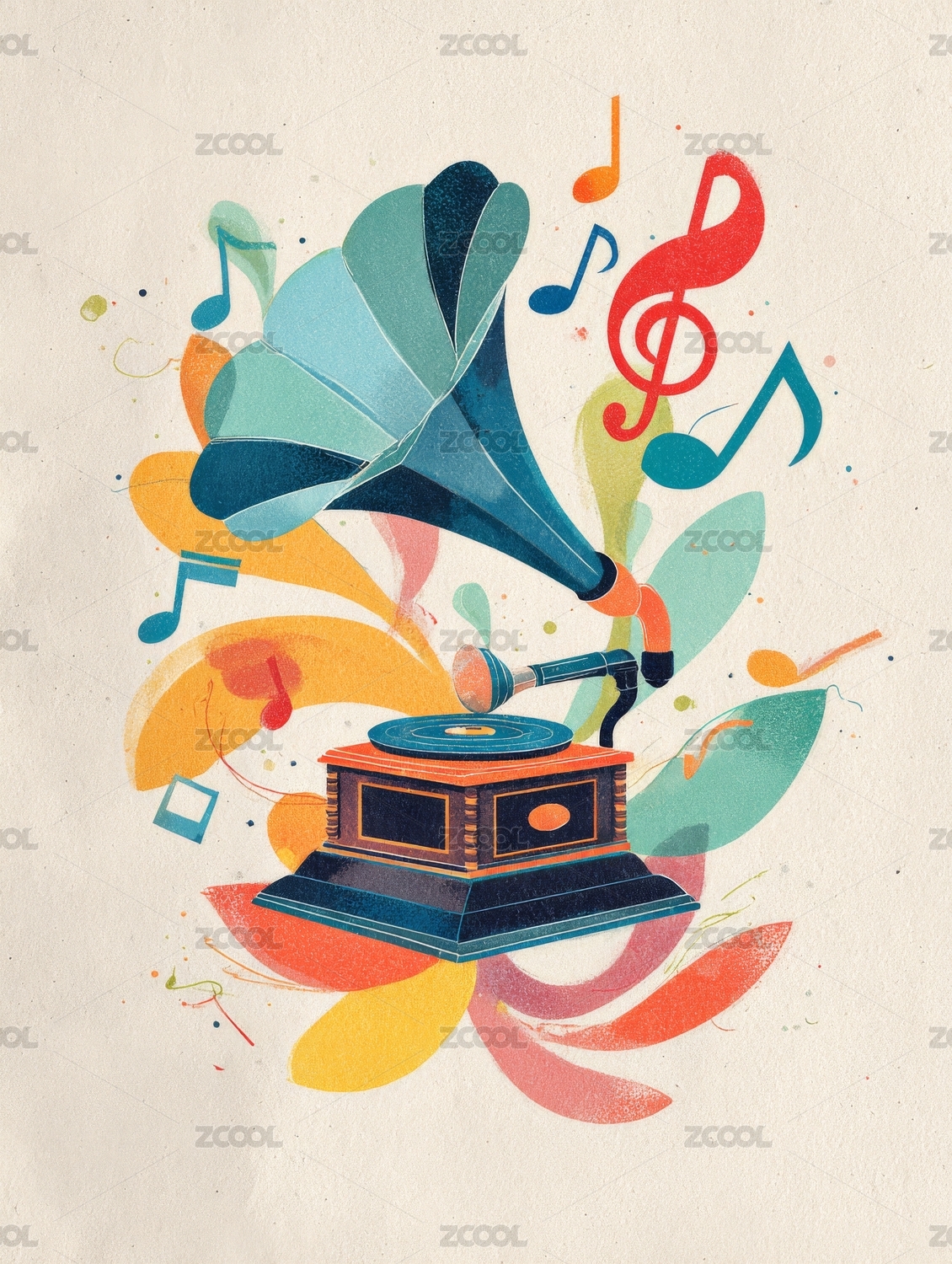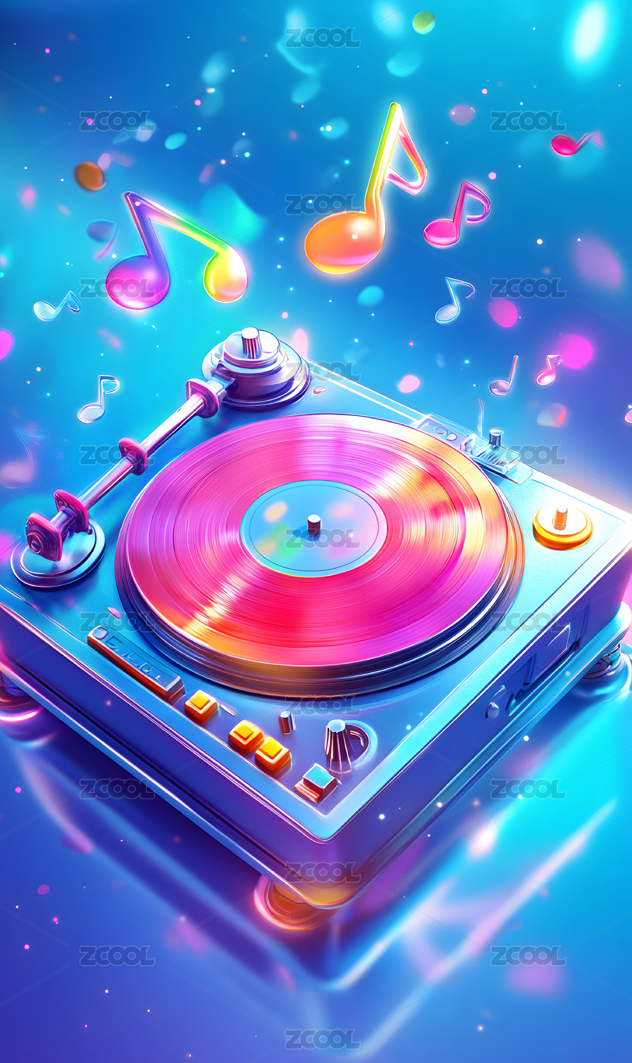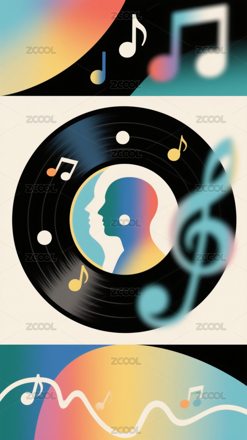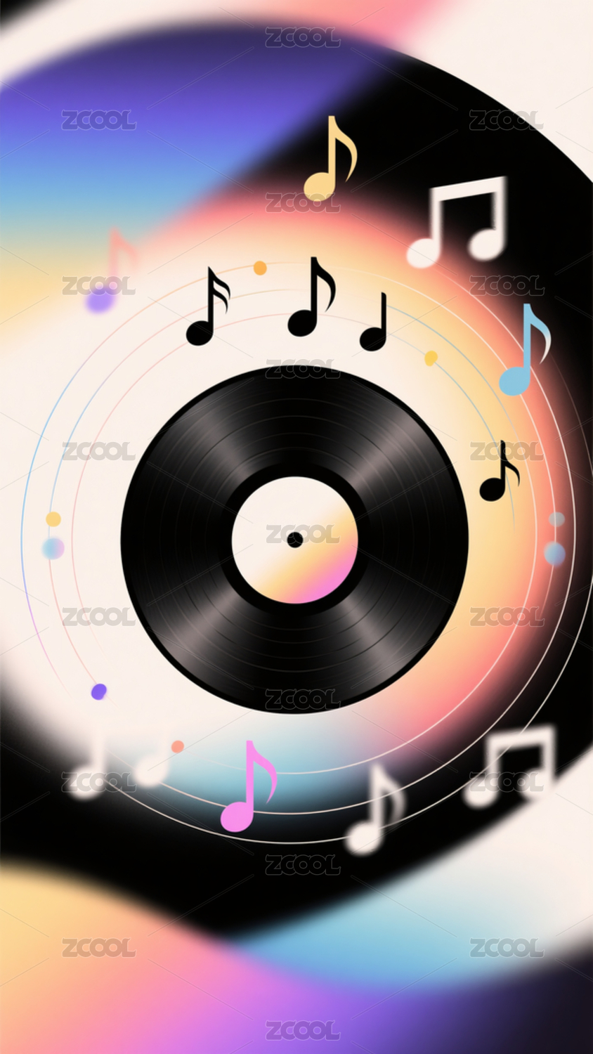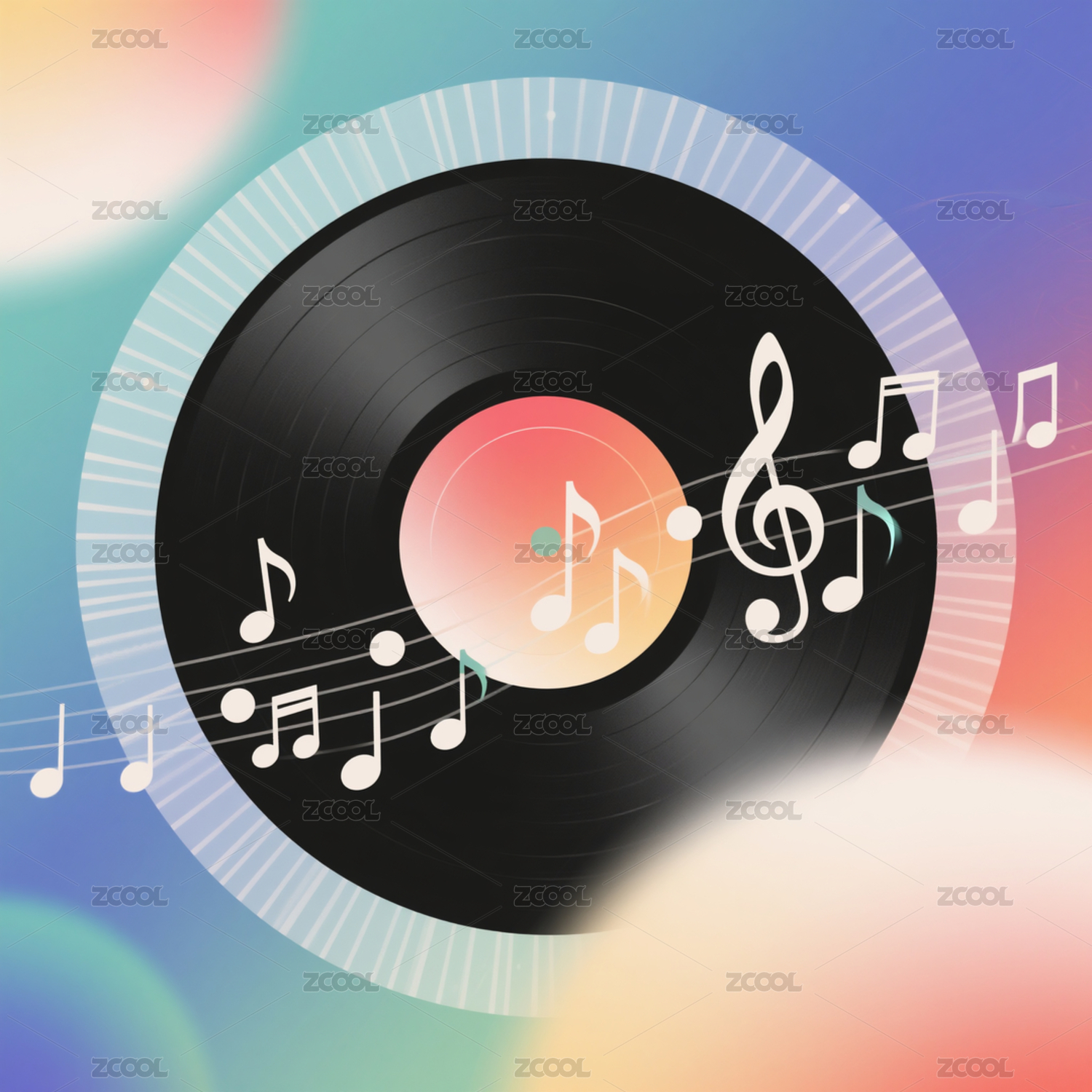 黑胶唱片,音符,音乐,环绕,声波,节奏,渐变,弥散,扁平化,半透明