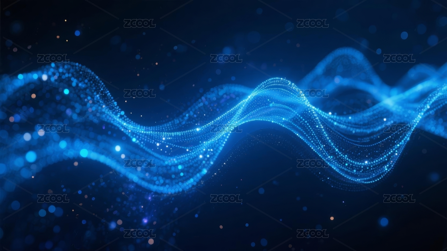 蓝色科技波浪与光点的未来场景