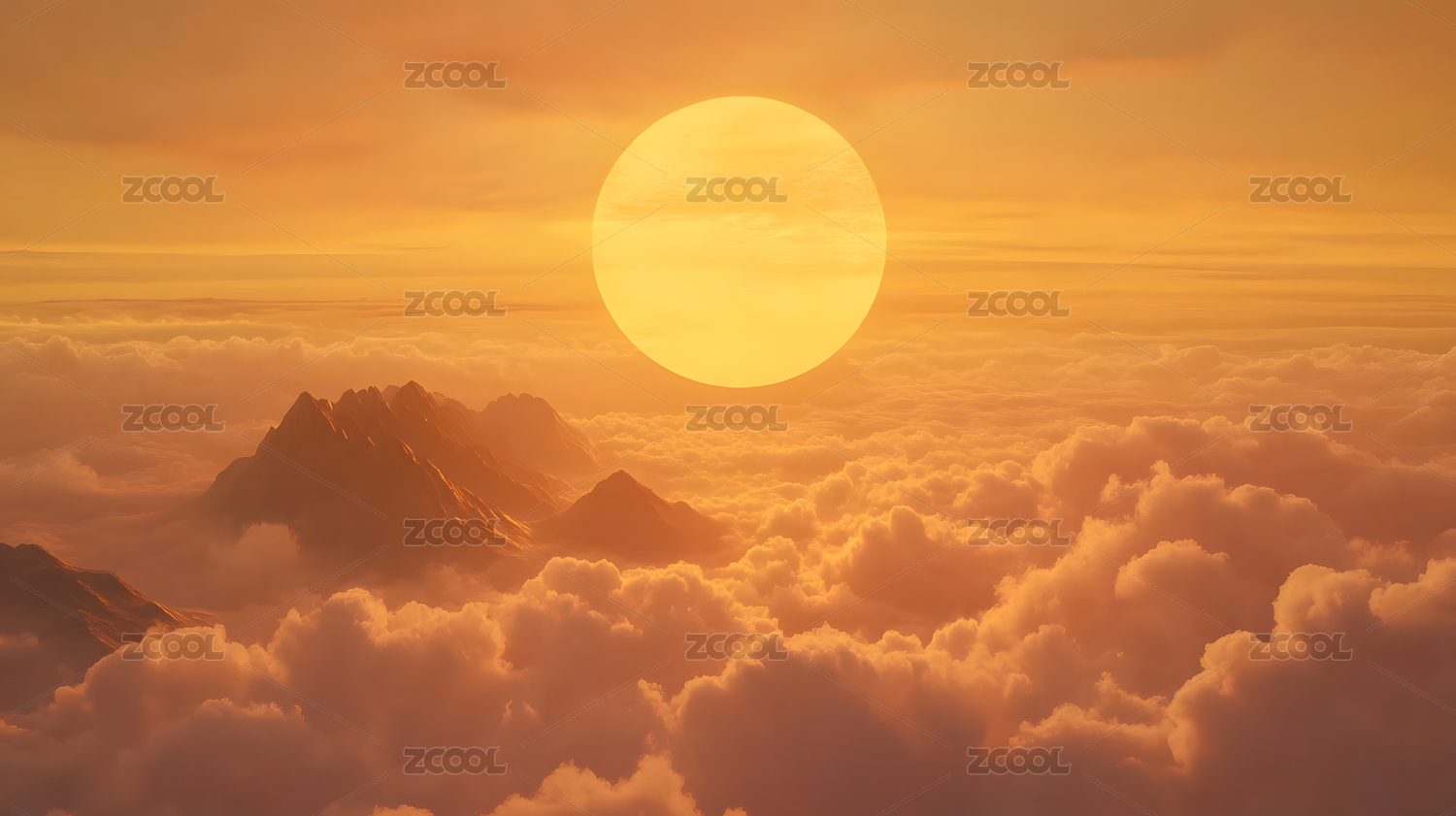 宁静,光线,深蓝,温暖,自然,天空,太阳,云海,橙黄,美景