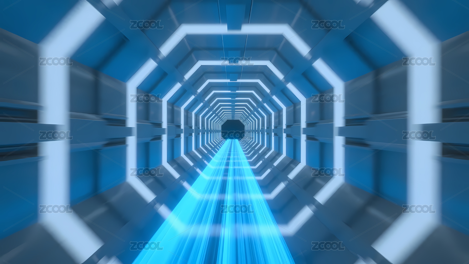 蓝色霓虹八边形隧道