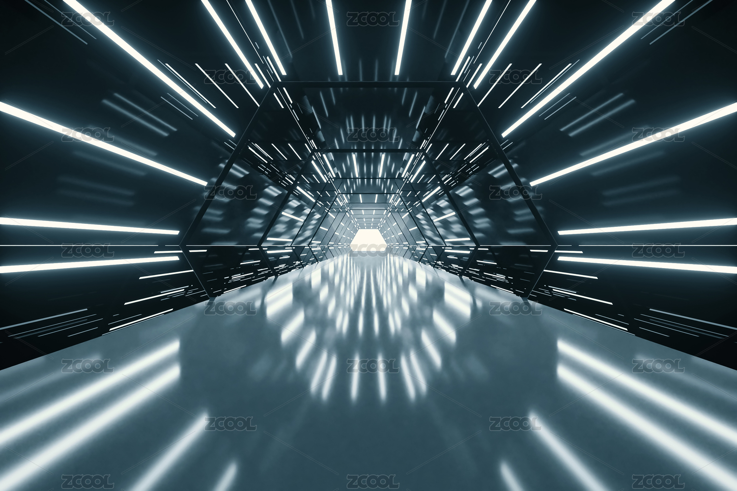 蓝白六边形隧道展现未来