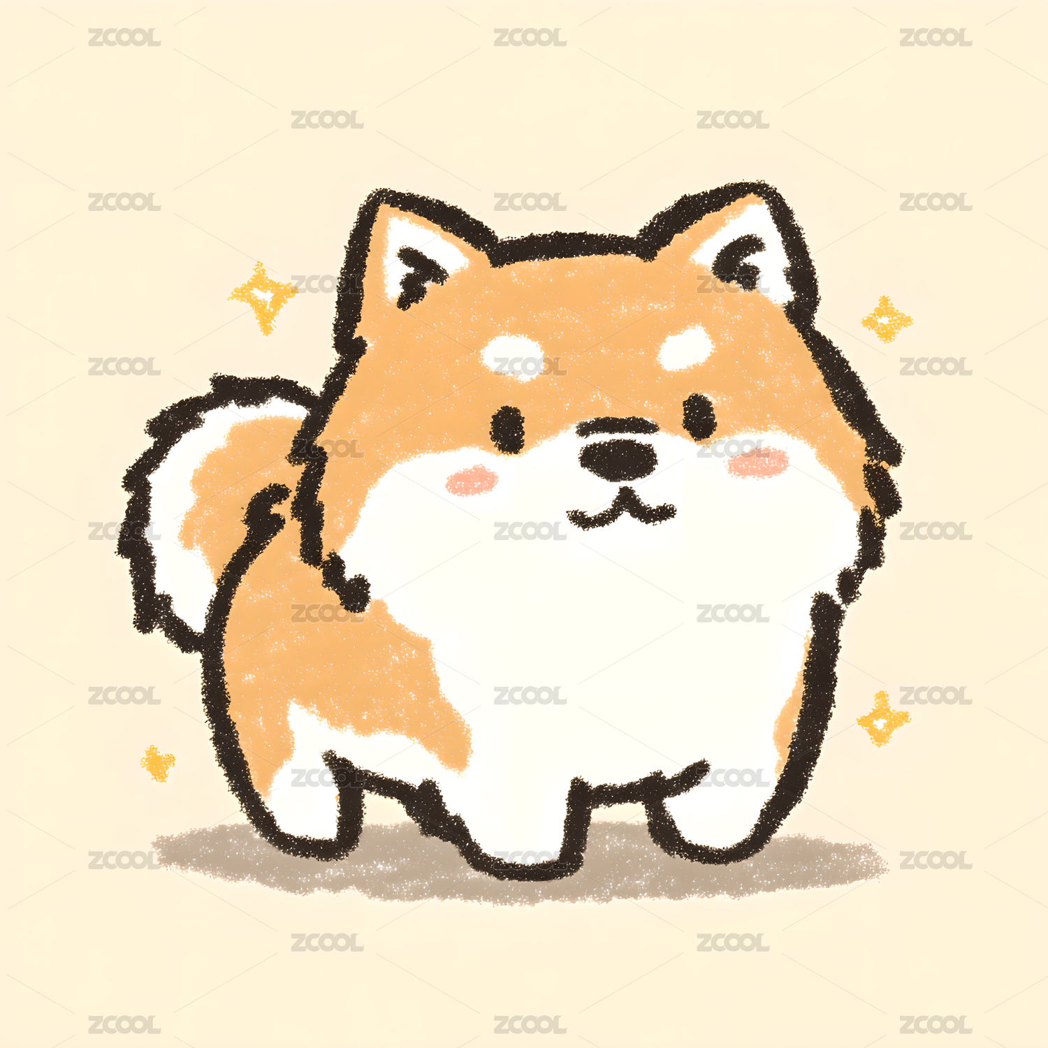 柴犬,Q版插画,Q版,可爱,治愈系,手绘插画,数字插画,棕色毛,裏白,白毛