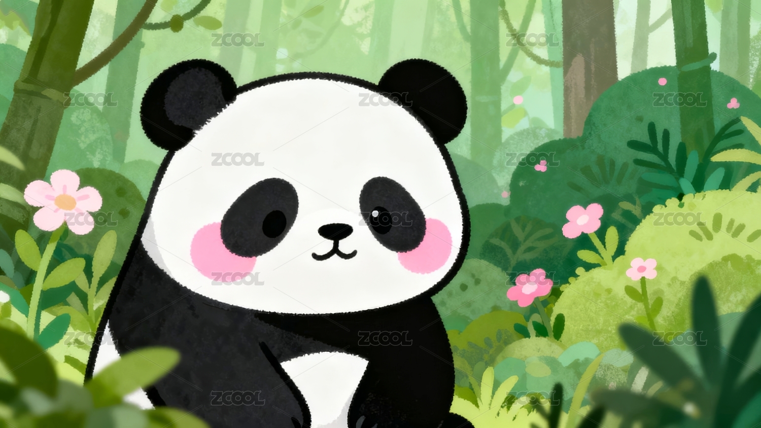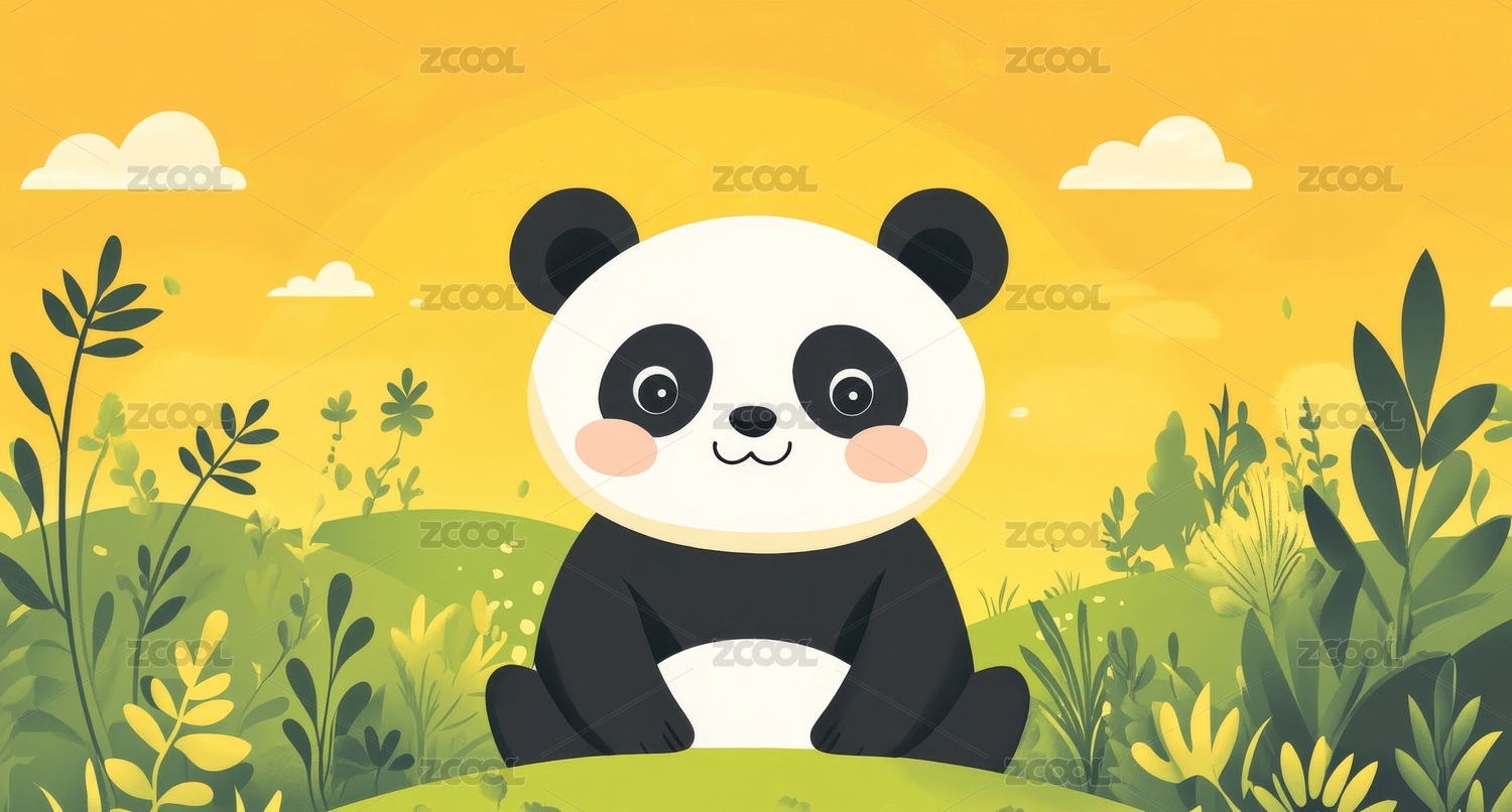 熊猫插画可爱森林场景