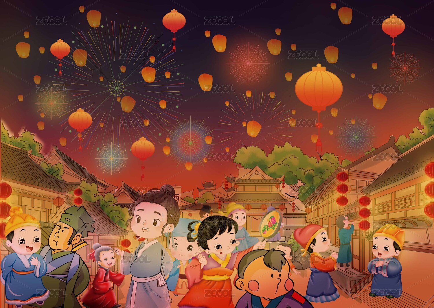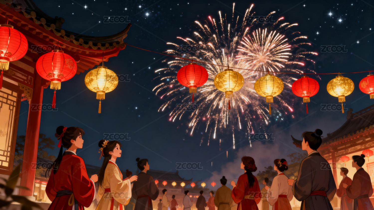 古风元宵节烟花灯会