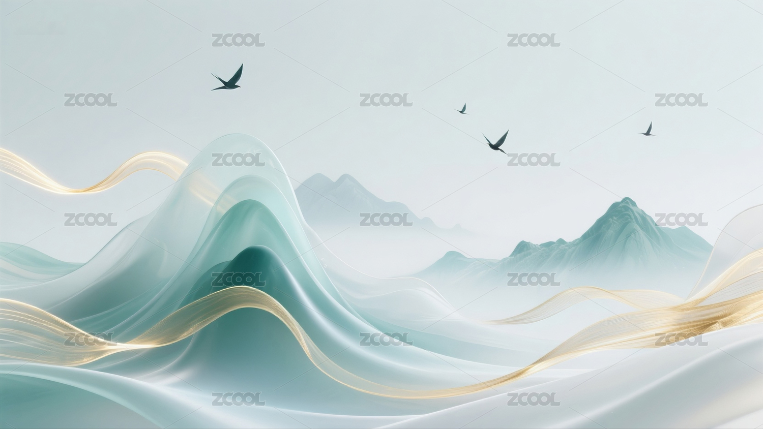 山水,山峦,山峰,飘带,流动,丝带,水墨,传统,中式,国潮