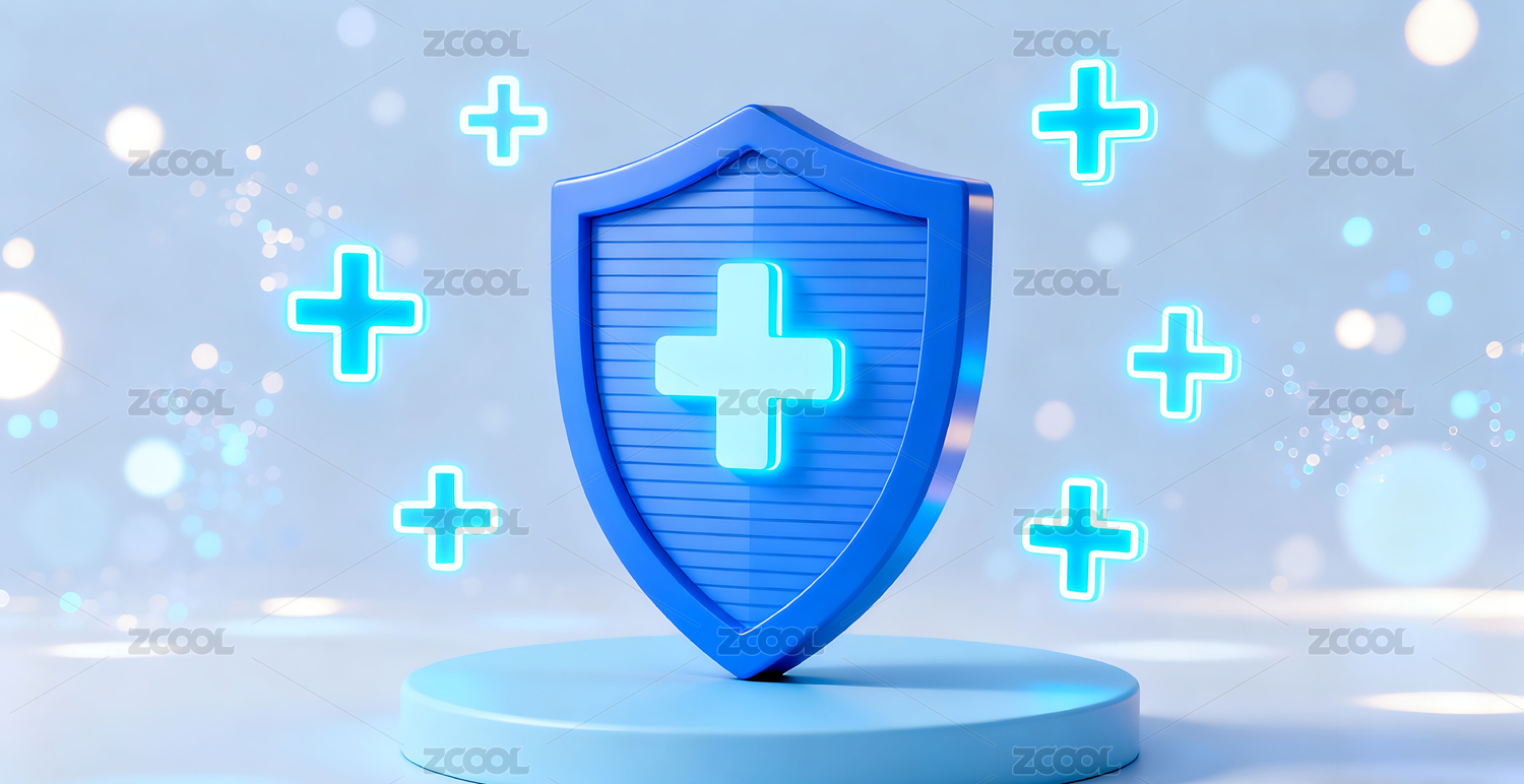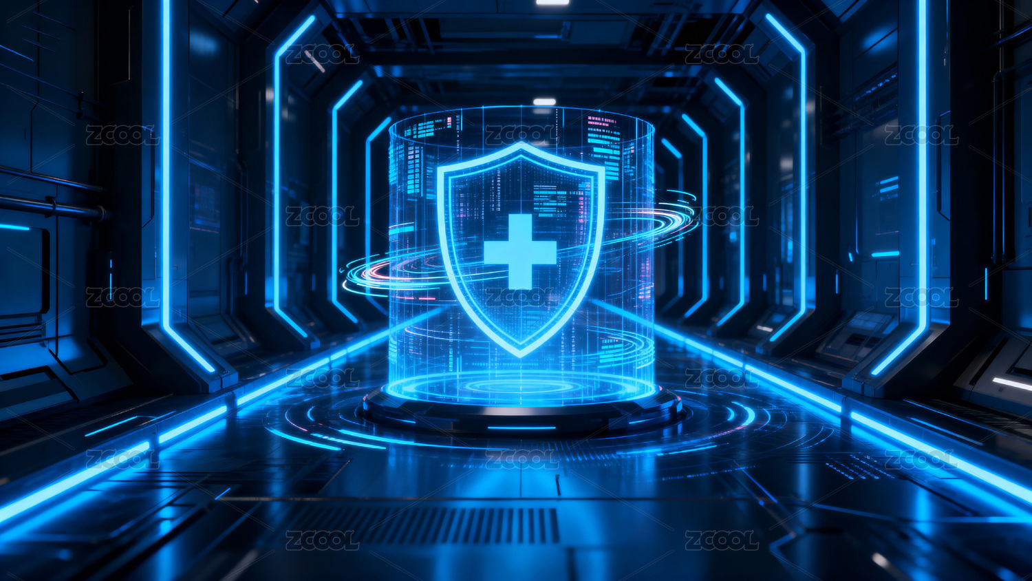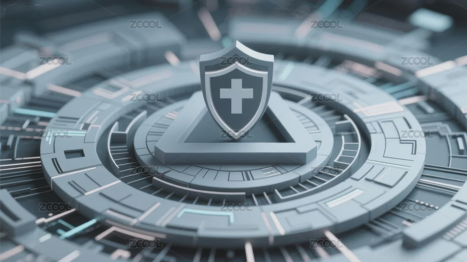 蓝色商务科技3D渲染盾牌图标主视觉背景