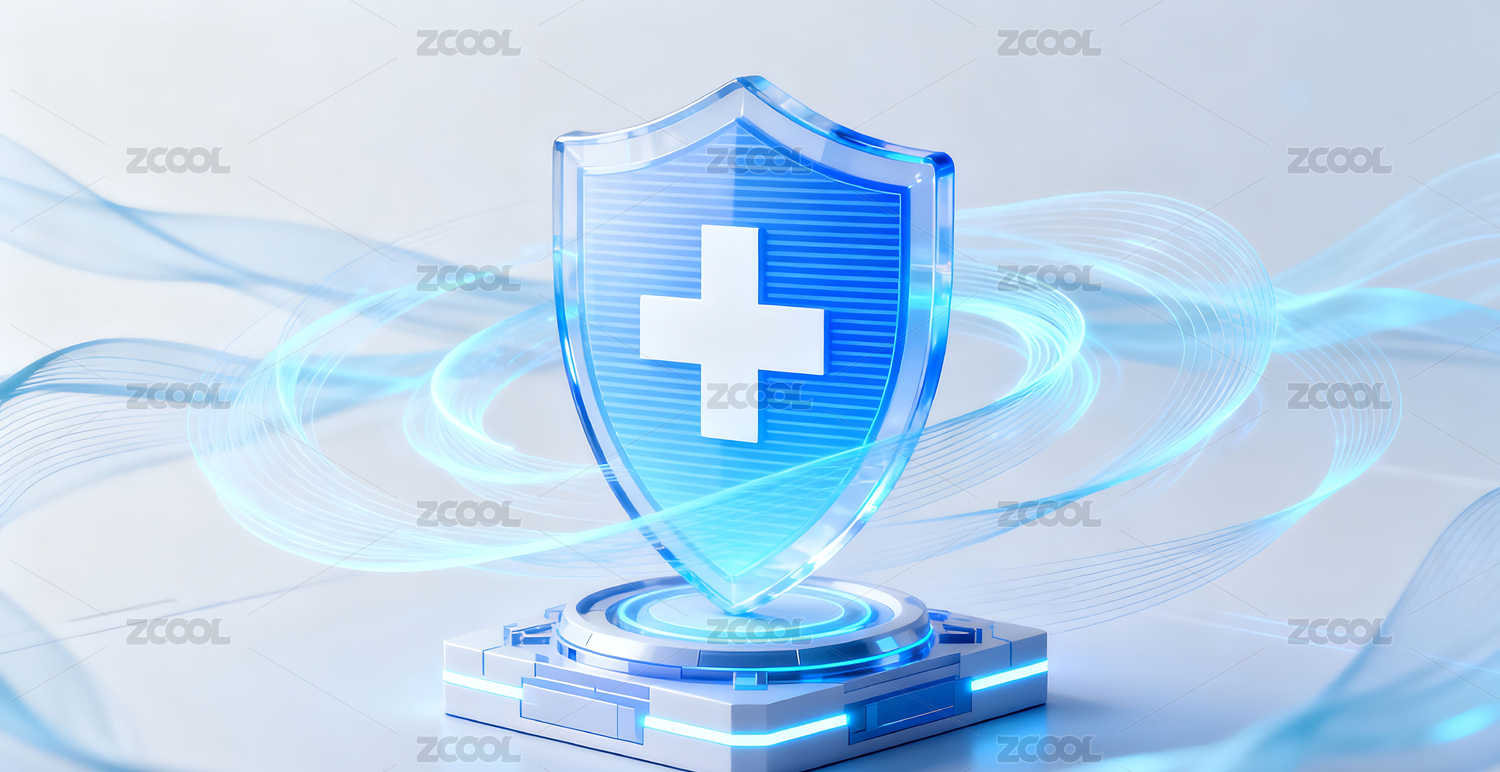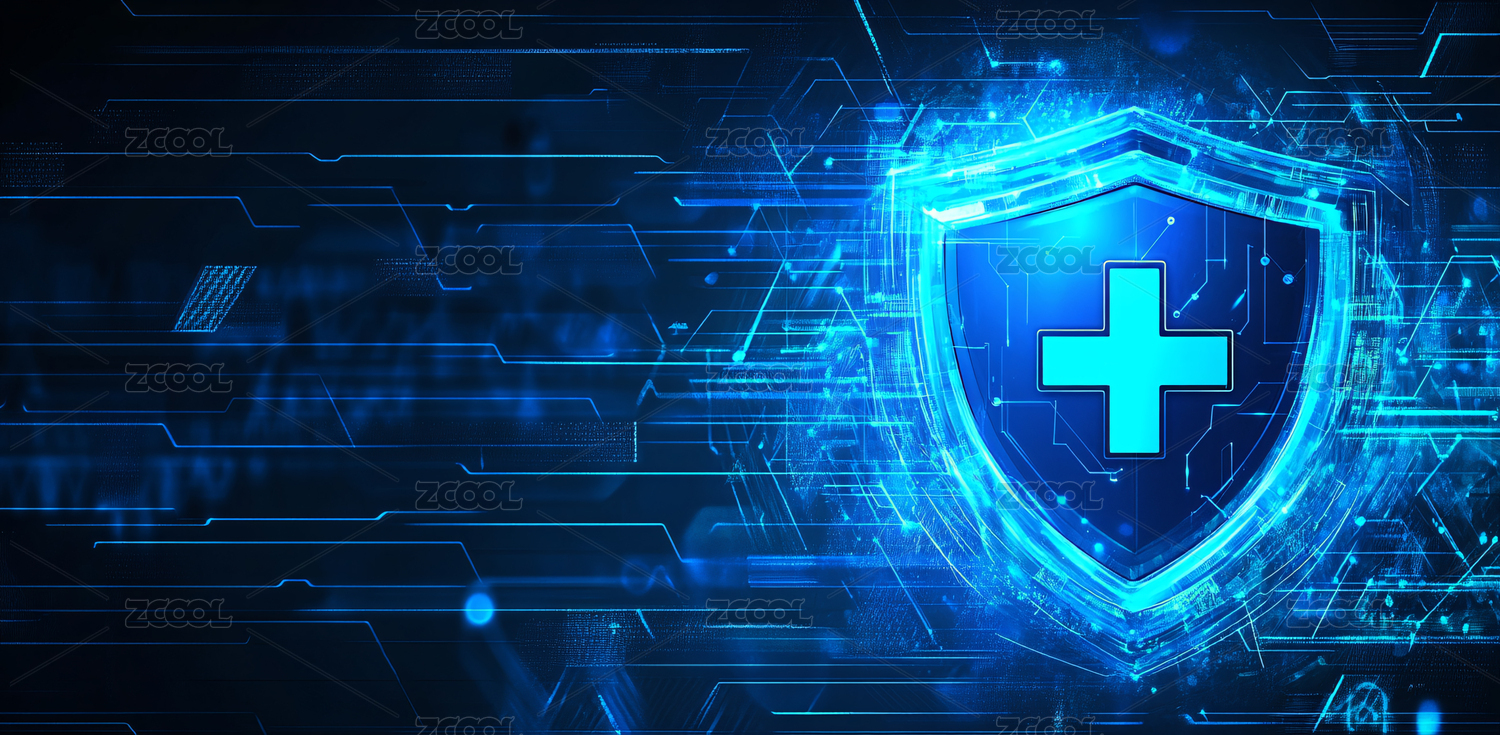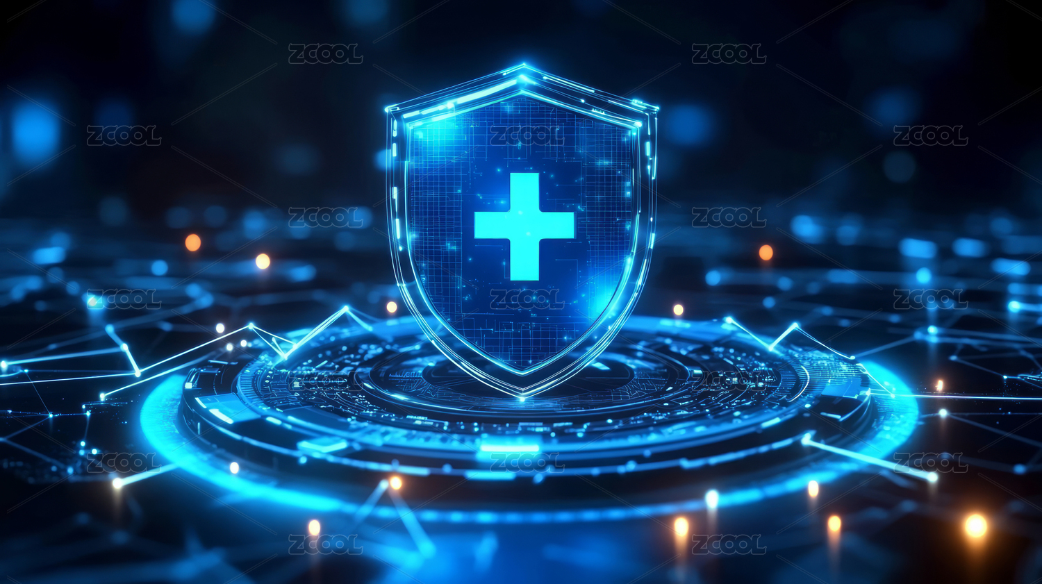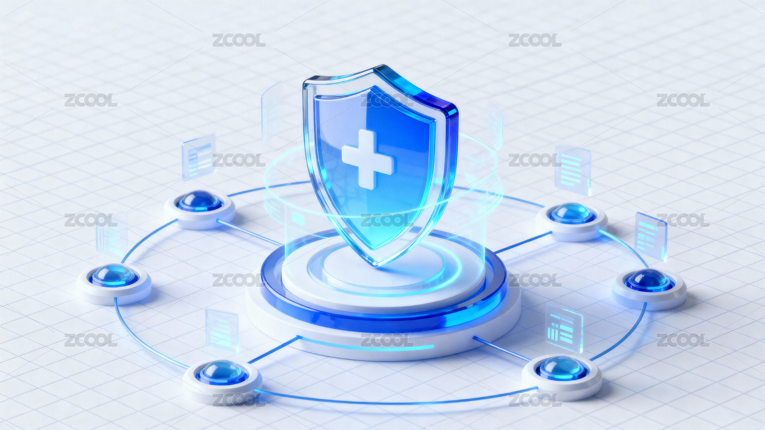 蓝色商务科技3D渲染盾牌图标主视觉背景