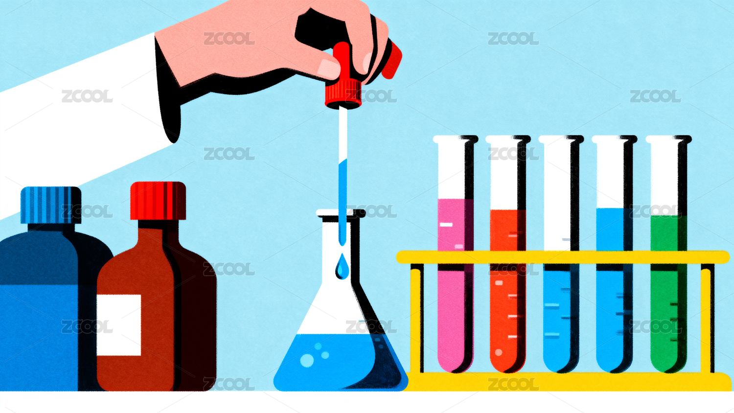医疗戴手套的手拿有液体的试管平面扁平插画