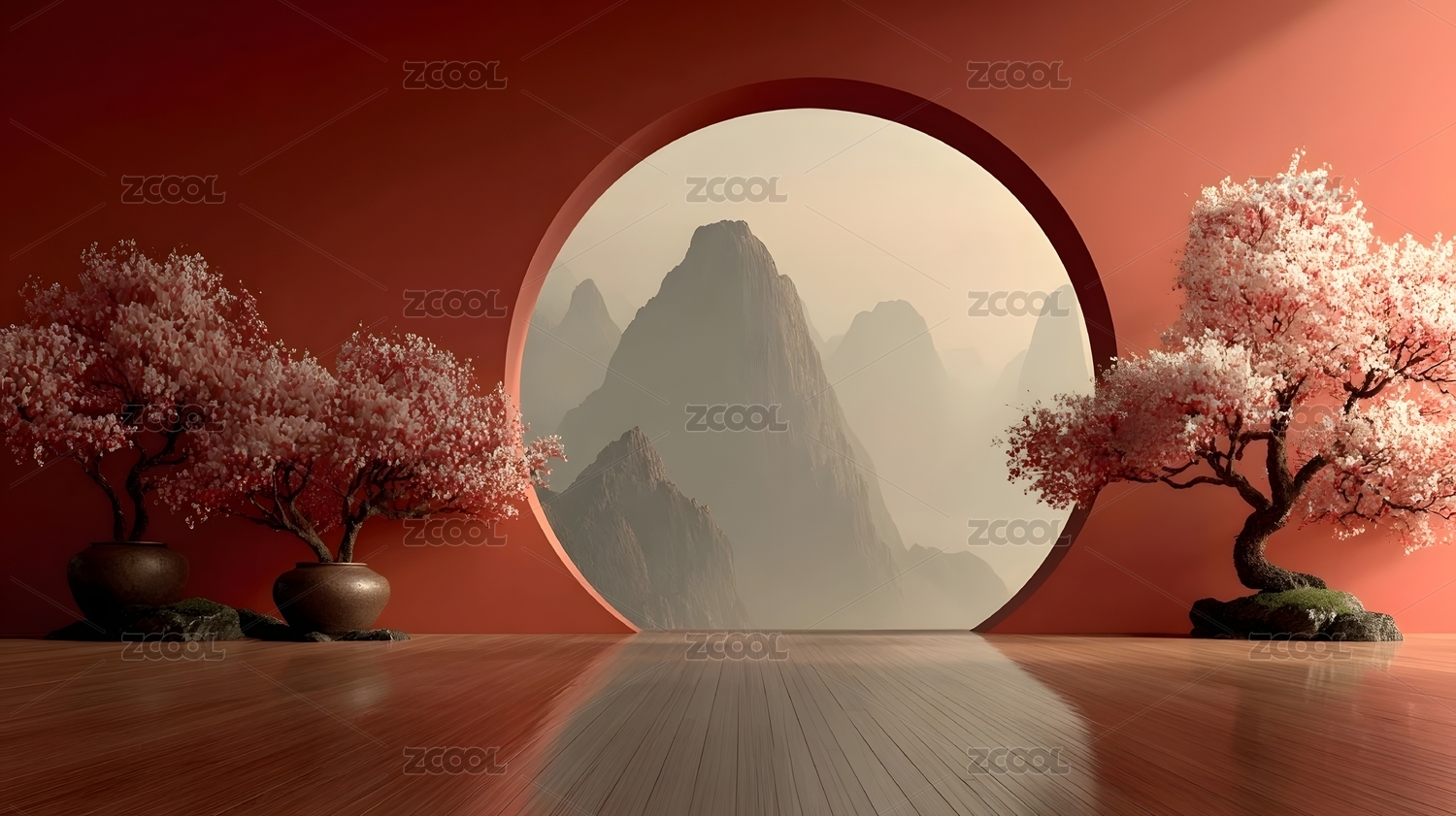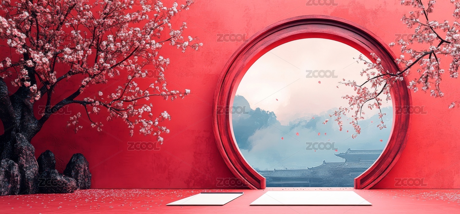 窗户,红色,装饰,静谧,设计,艺术,背景,树木,圆形,自然