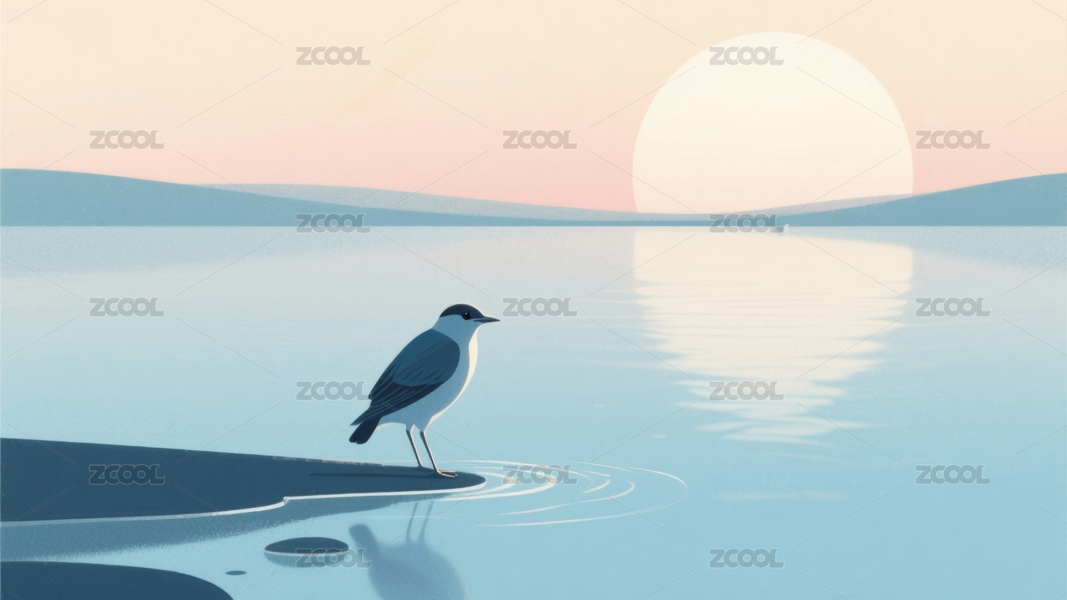 海鸥饮水瞬间色彩斑斓的海岸风景