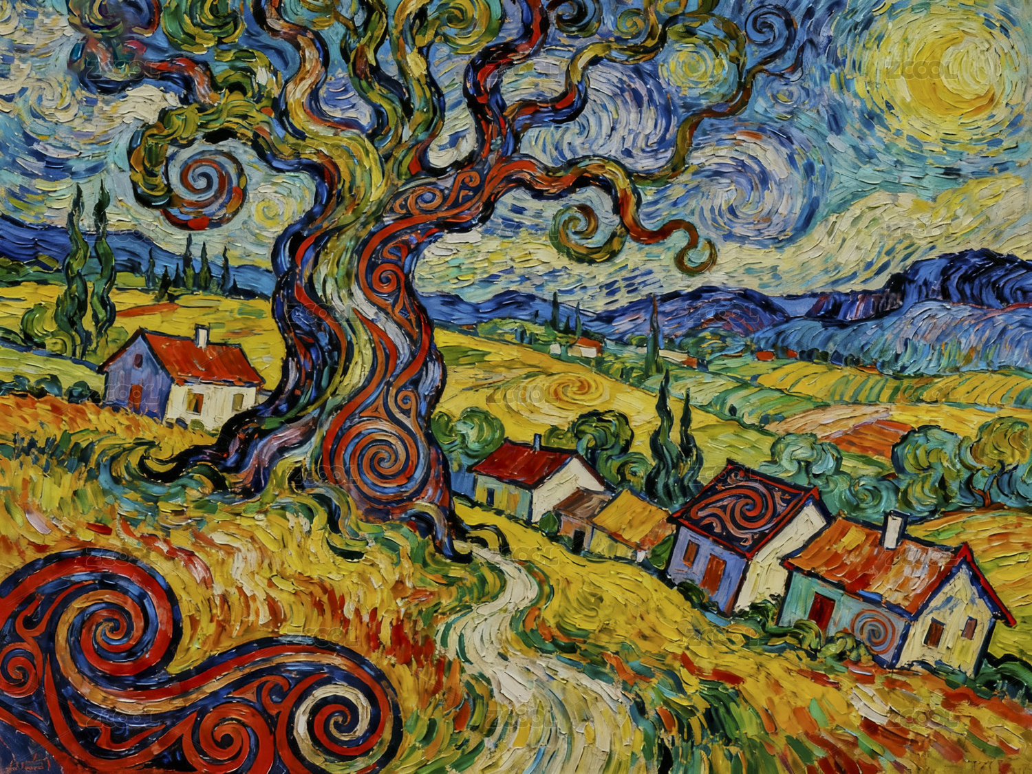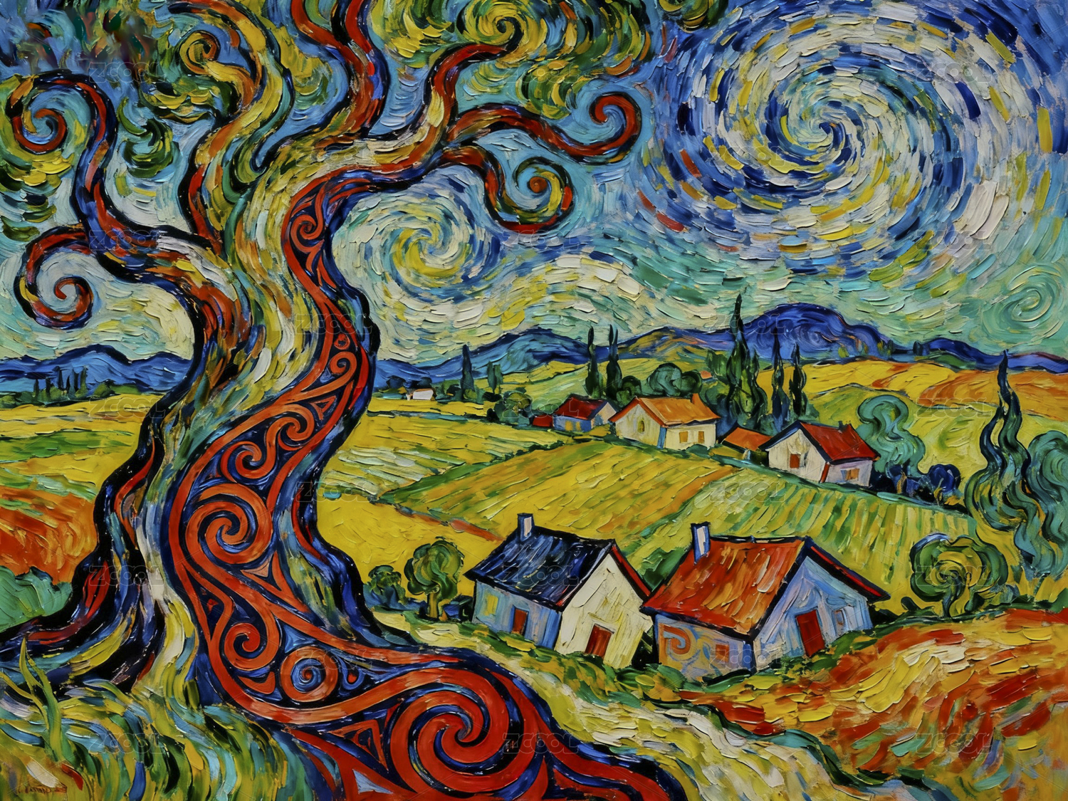 梵高风格乡村风景画