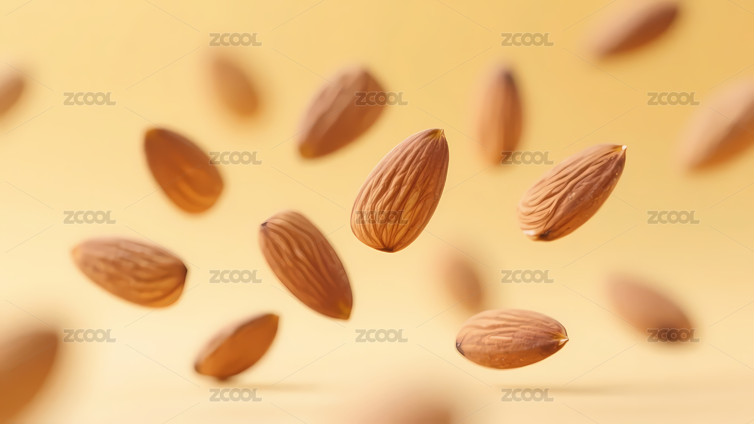 杏仁,盐粒,坚果,动态,特写,悬浮,食材,酥脆,零食,摄影