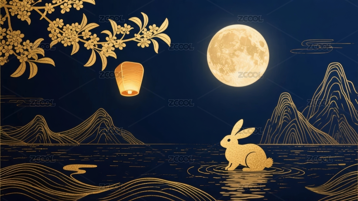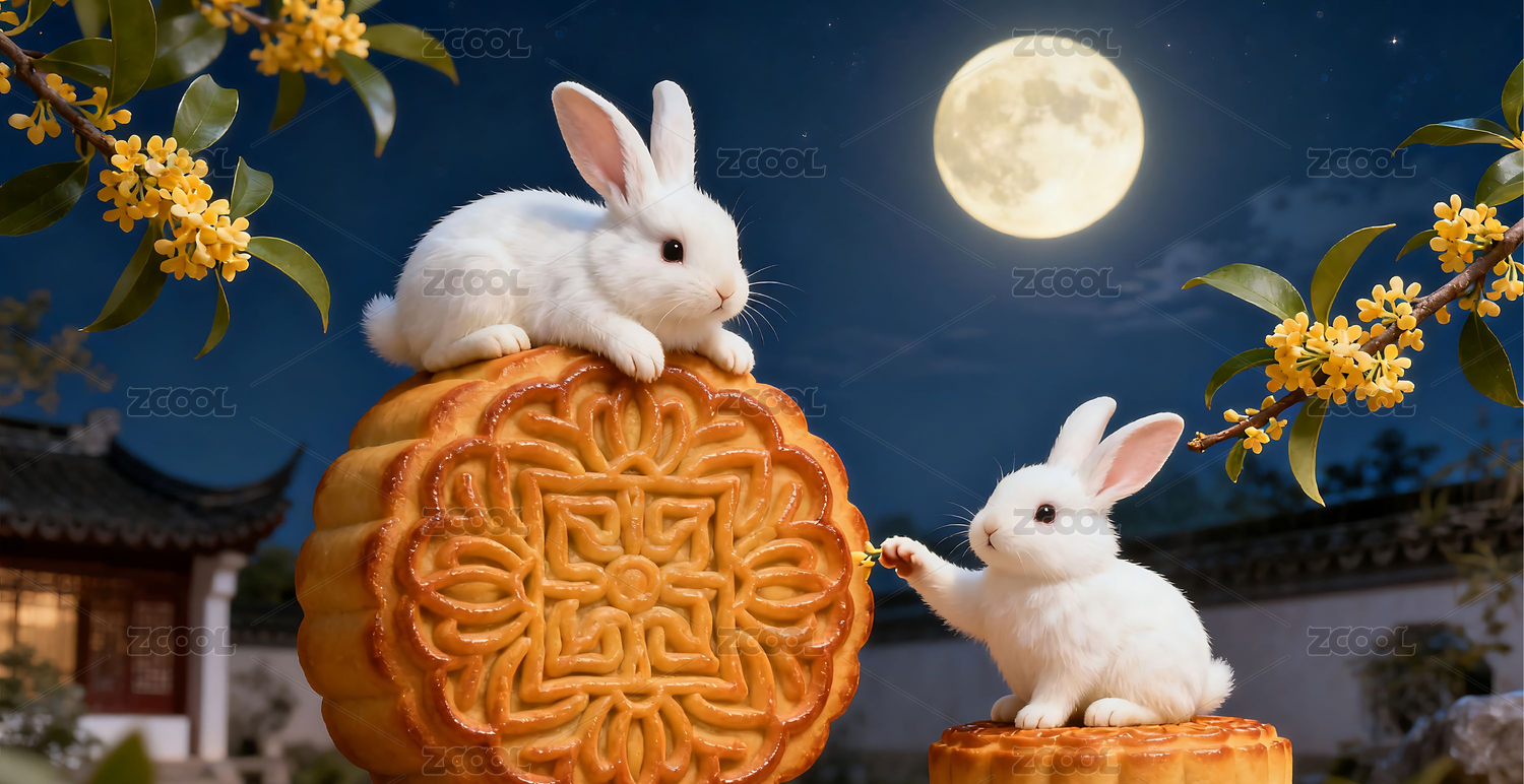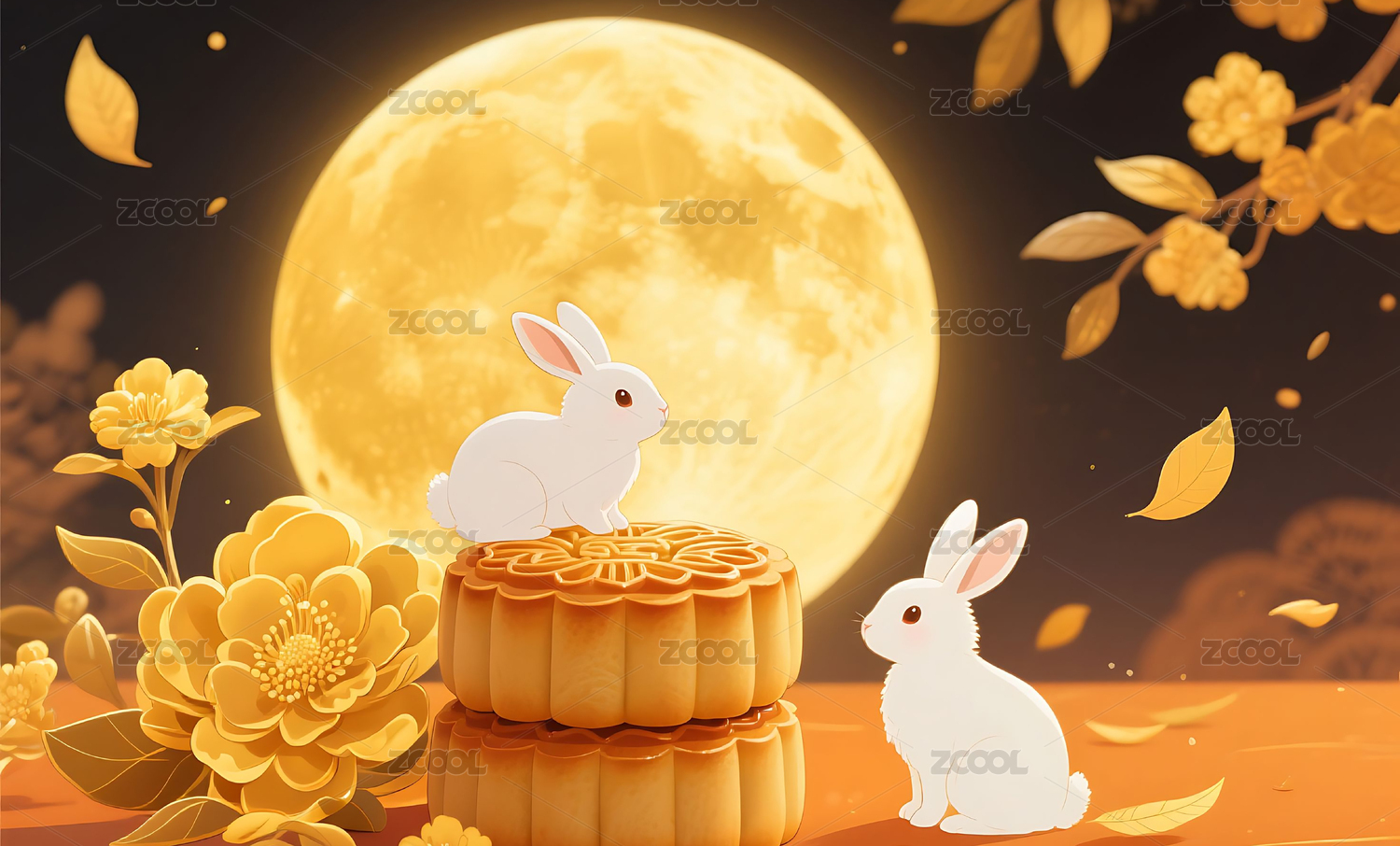 金兔,圆月,海洛,中秋,玉兔,明月,传统,佳节,兔影,月色