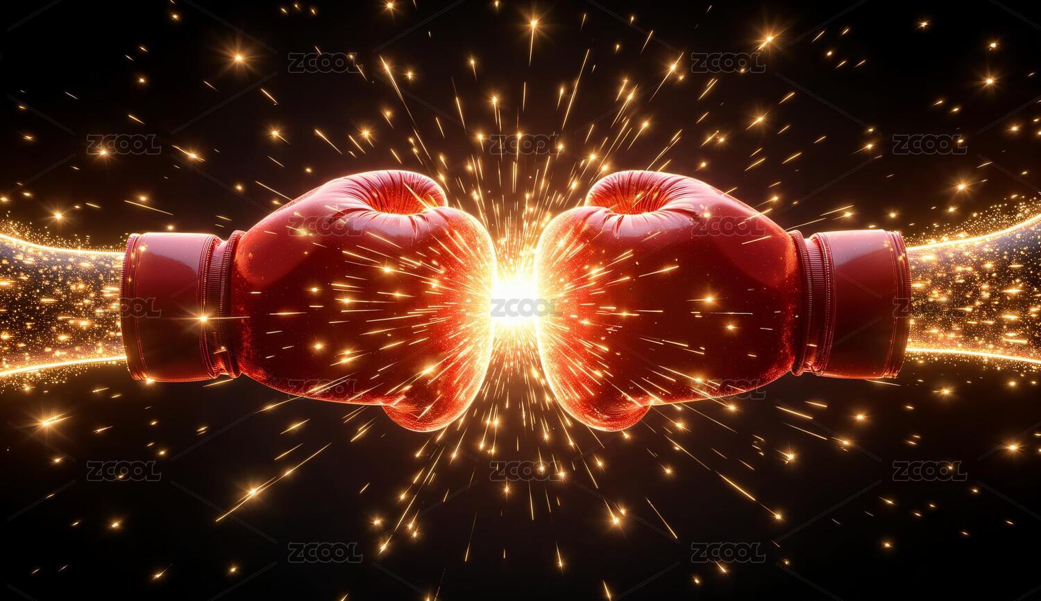 拳击手套碰撞火花四溅