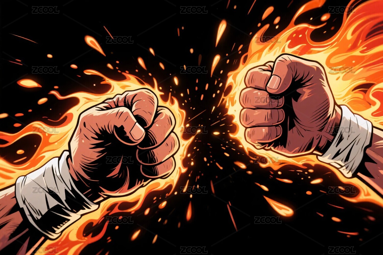 对决火焰拳头插画
