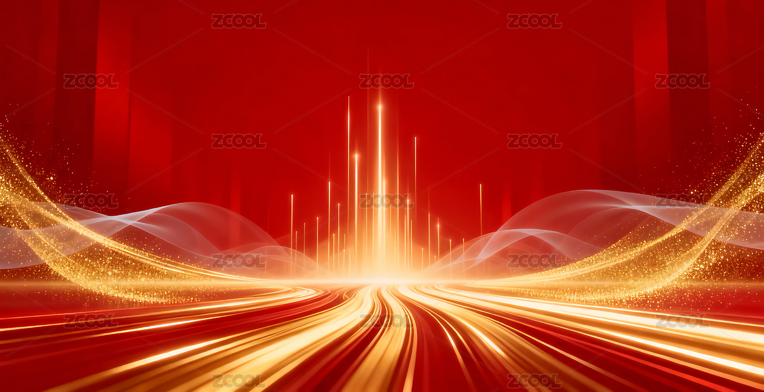 红色,金色,流光,喜庆,背景,曲线,光效,节日,舞台,庆典