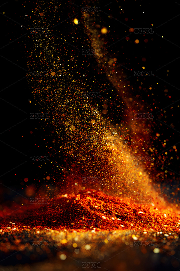 辣椒粉与籽粒喷洒瞬间
