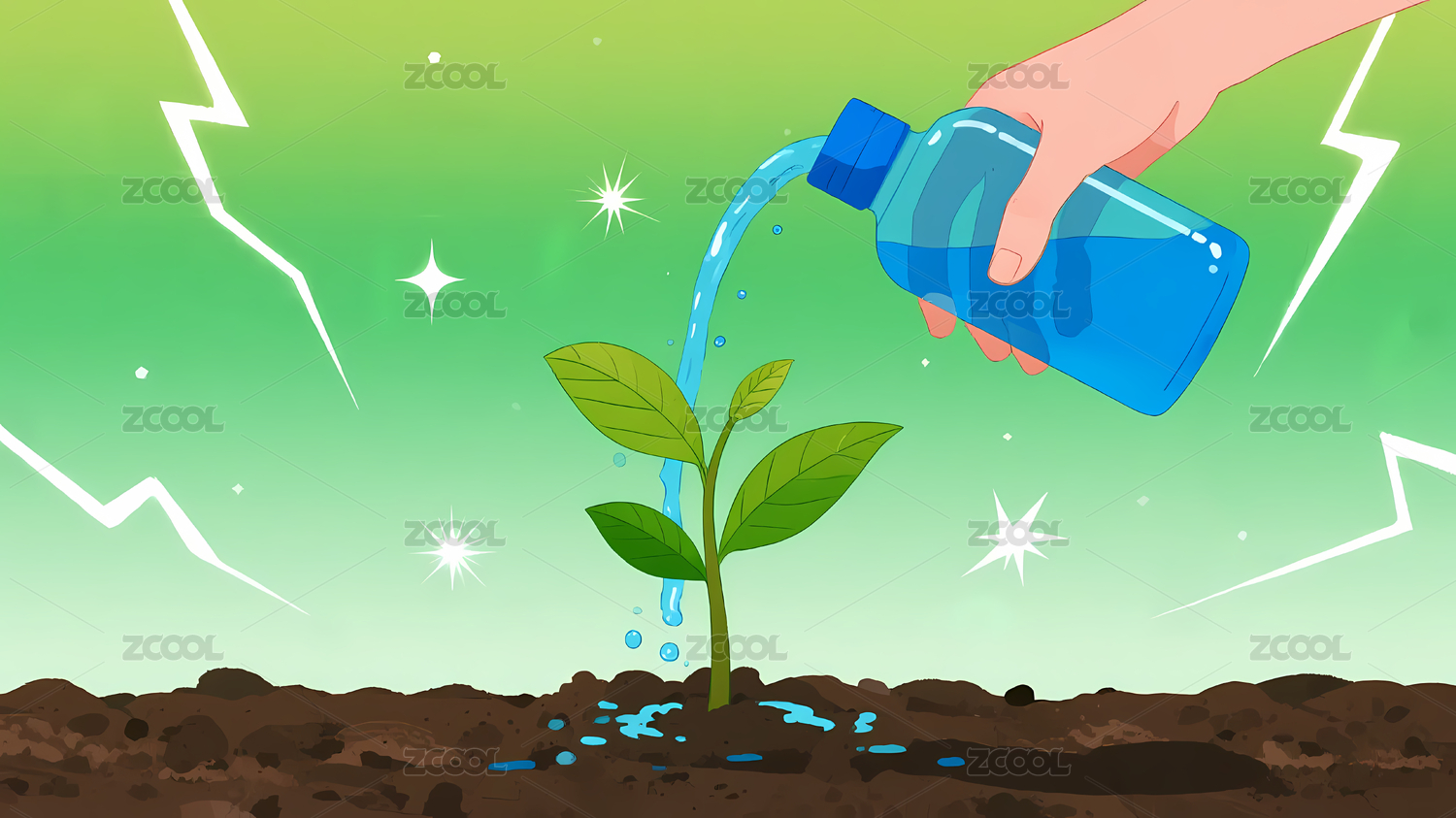 蓝瓶浇水绿苗闪电图