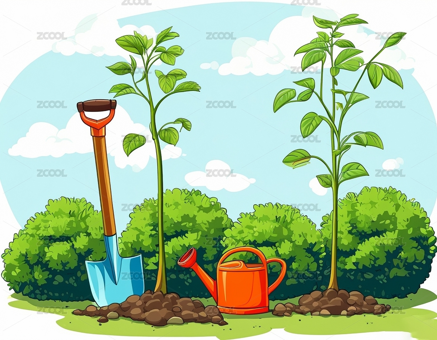爱心浇水树苗插画
