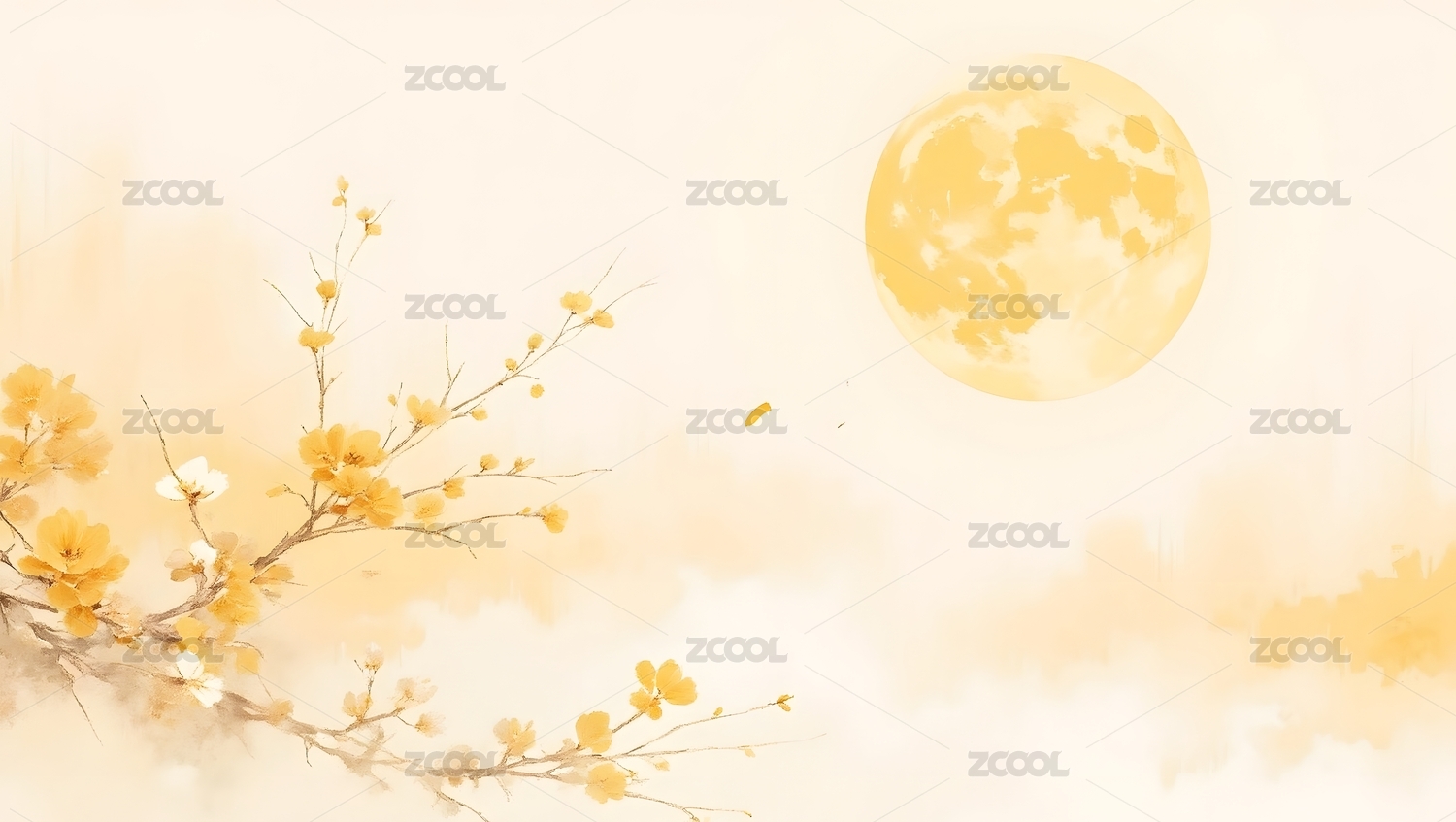 猫,猫咪,插画,背景,抽象,概念,梅花,月亮,白猫,红梅