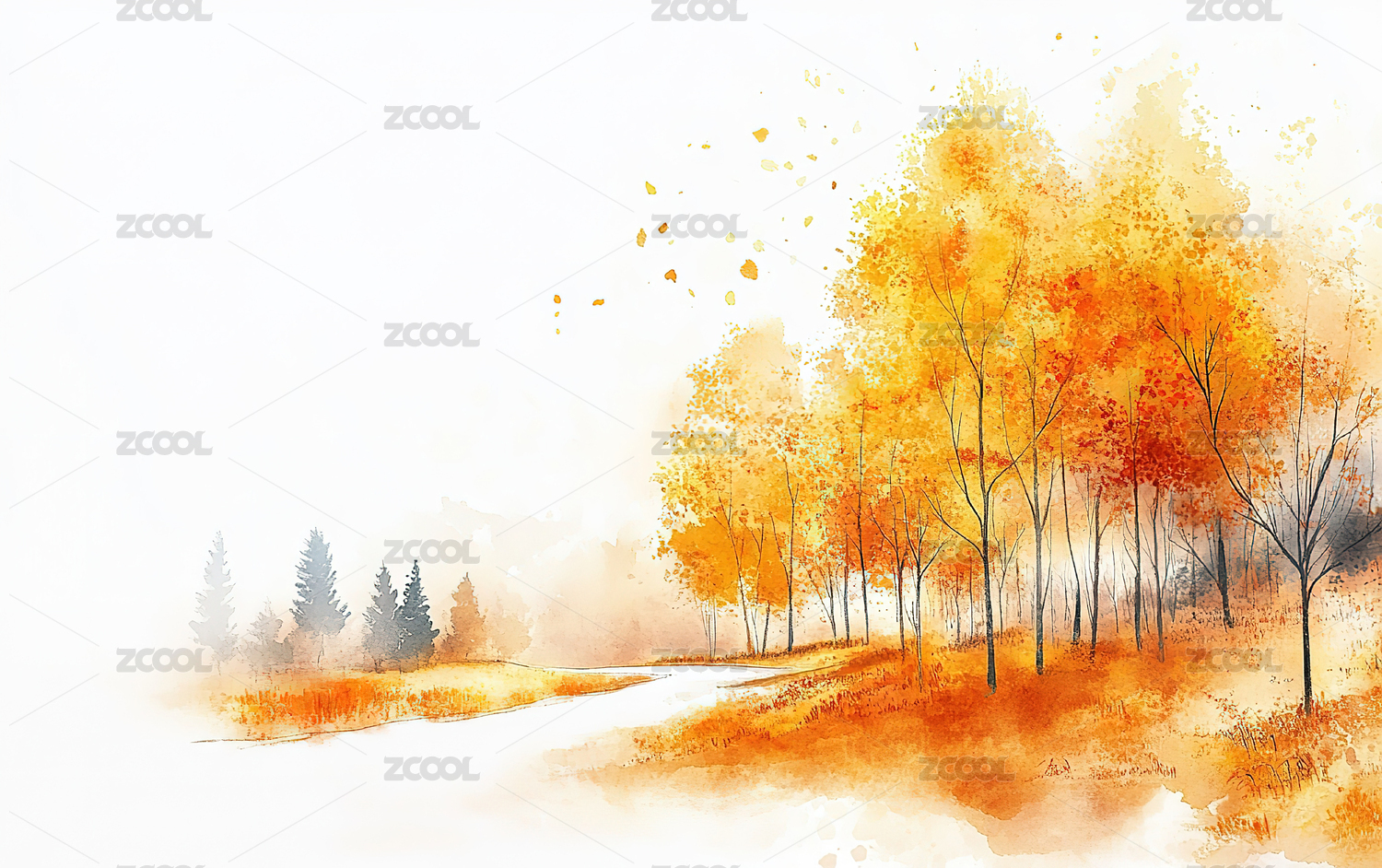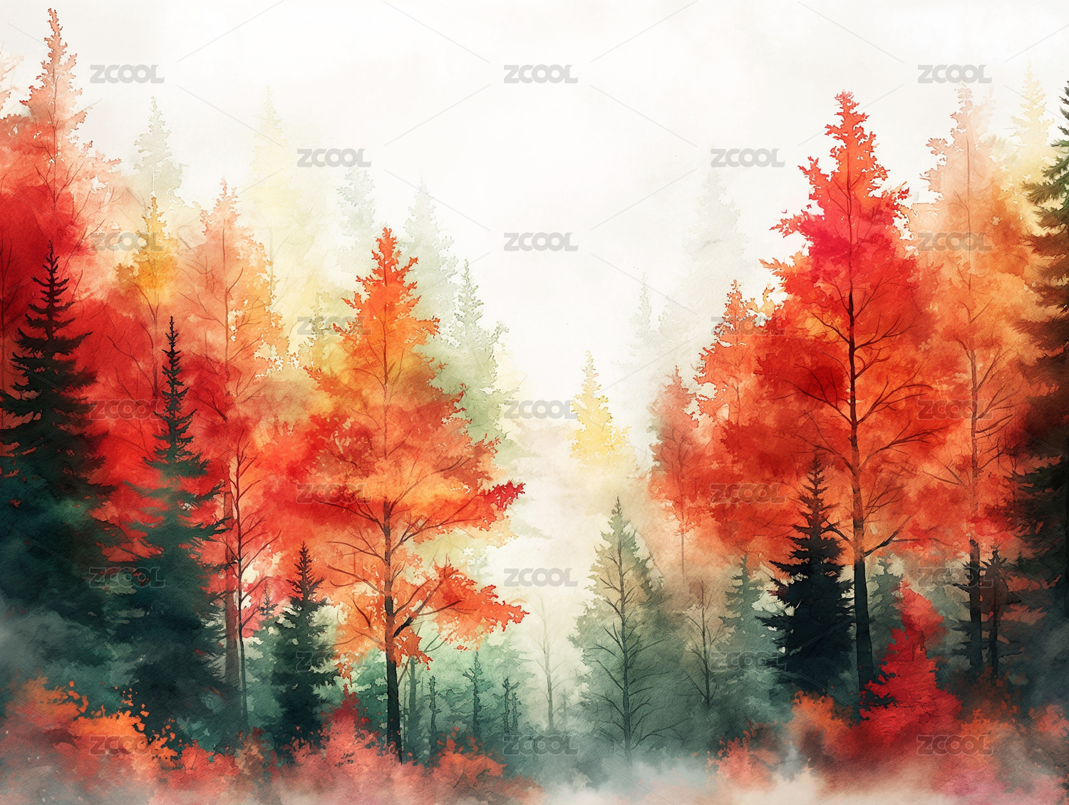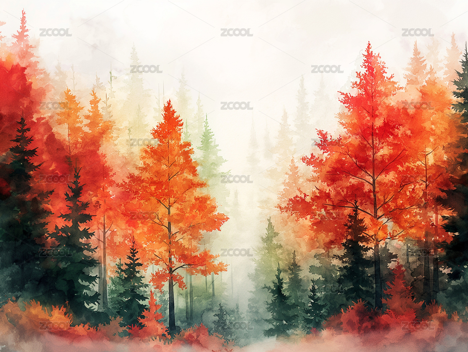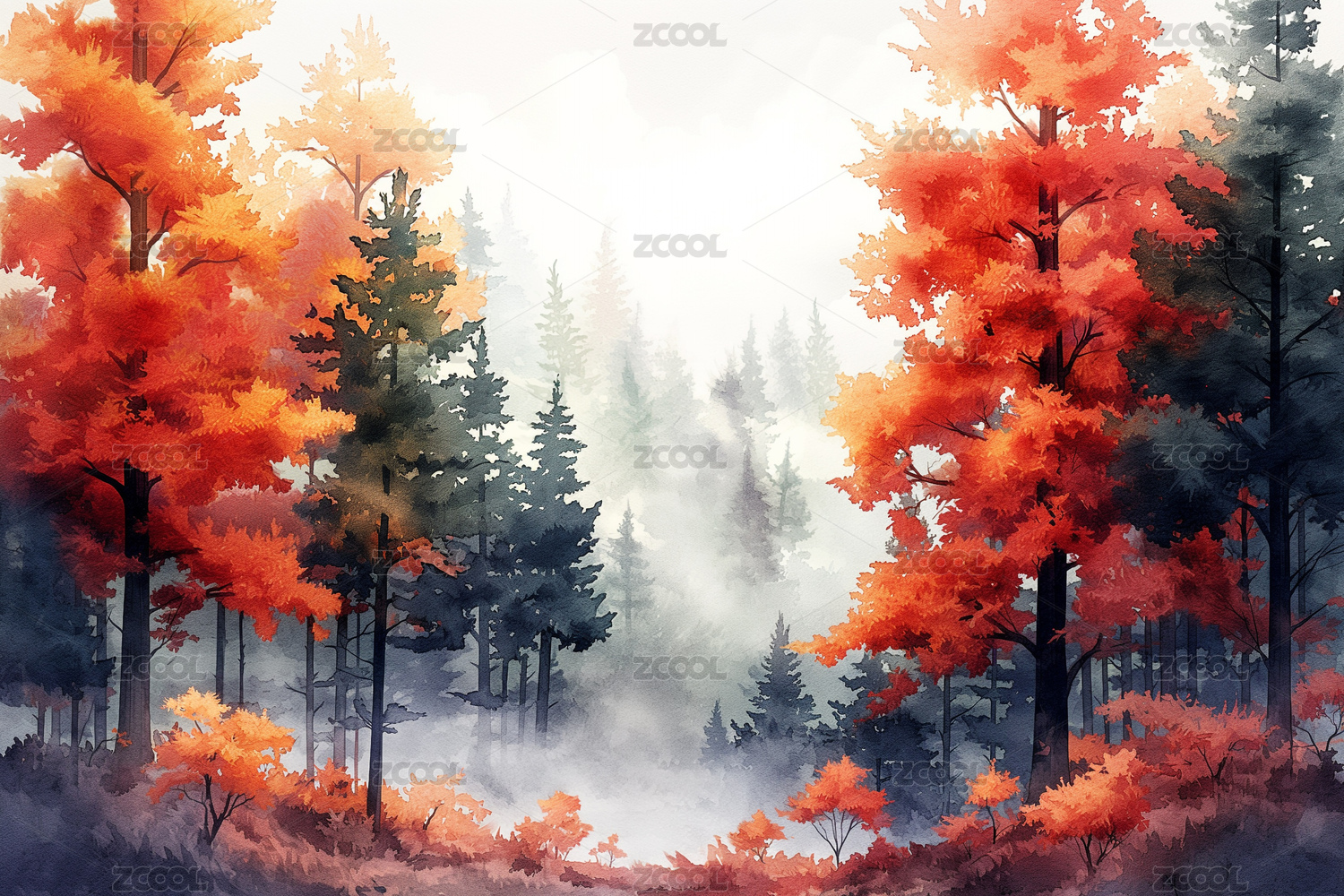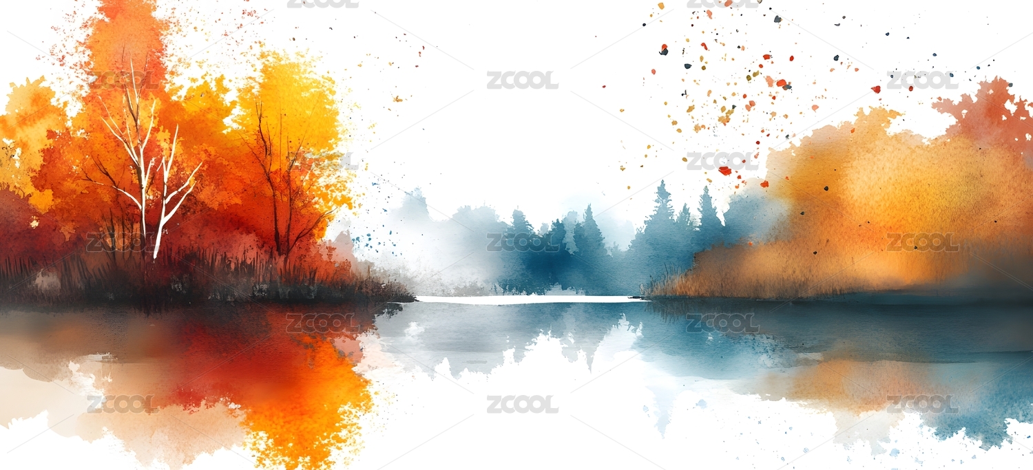 森林,湖泊,自然,风光,水彩画,树木,倒影,景观,色彩,斑斓