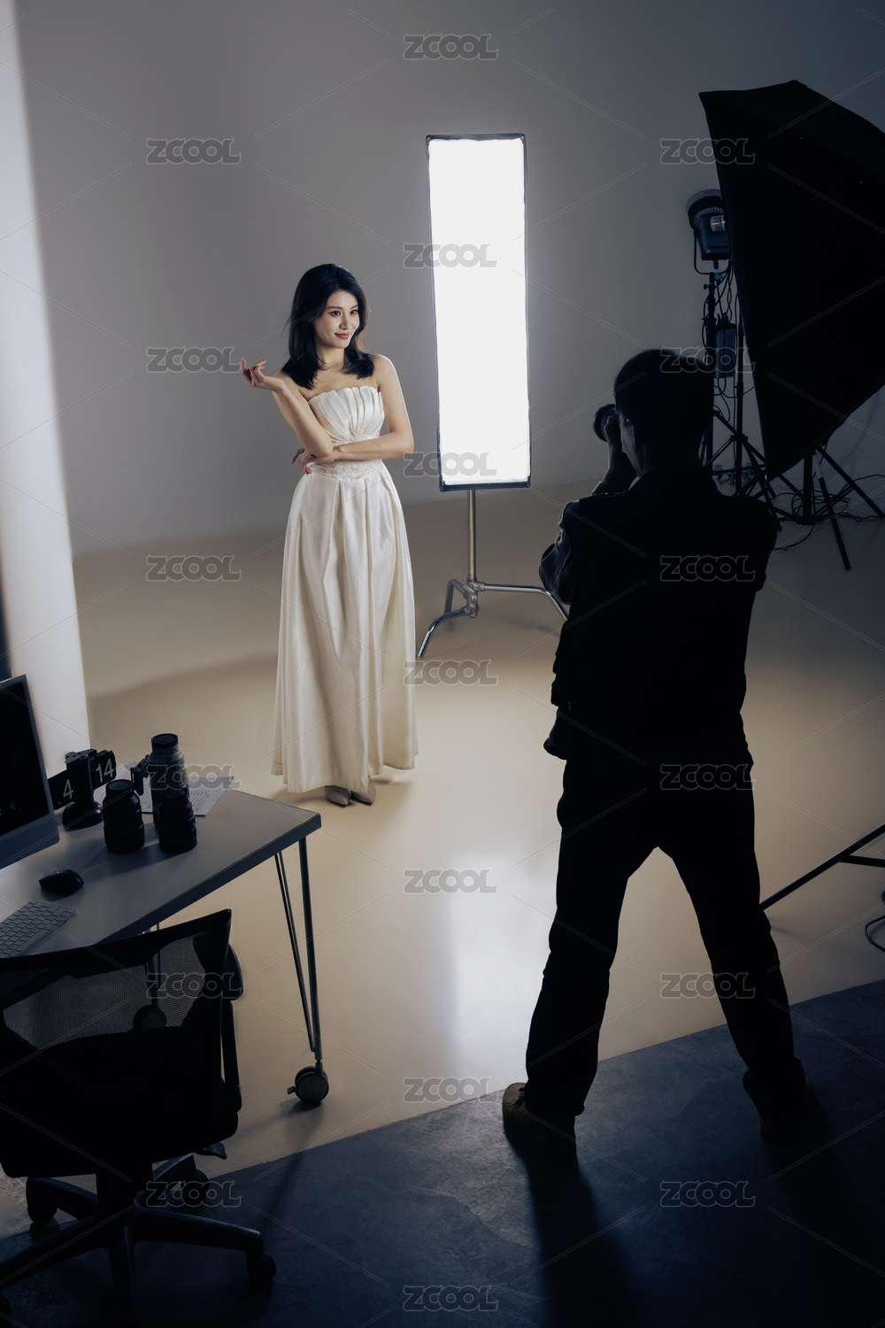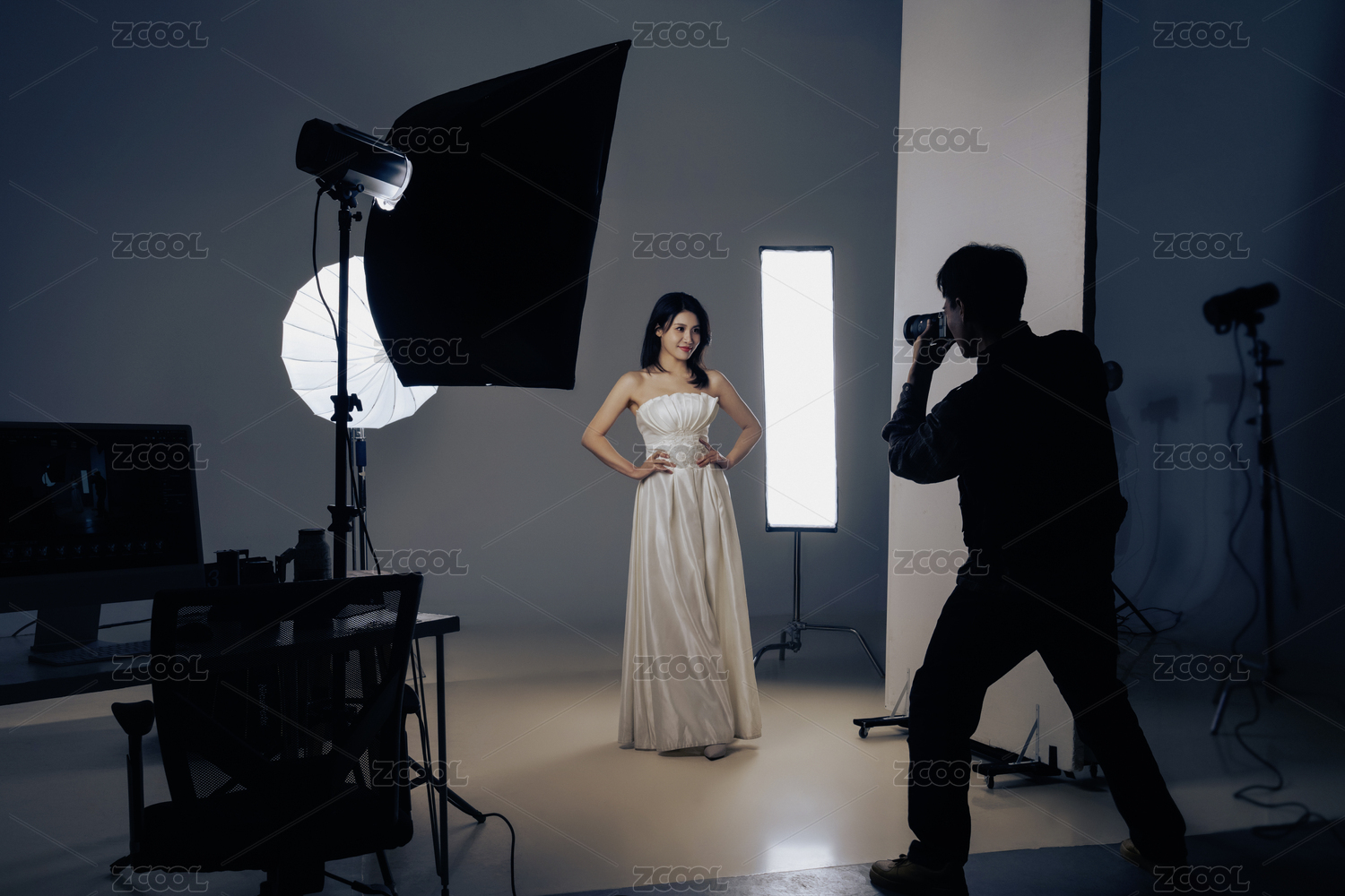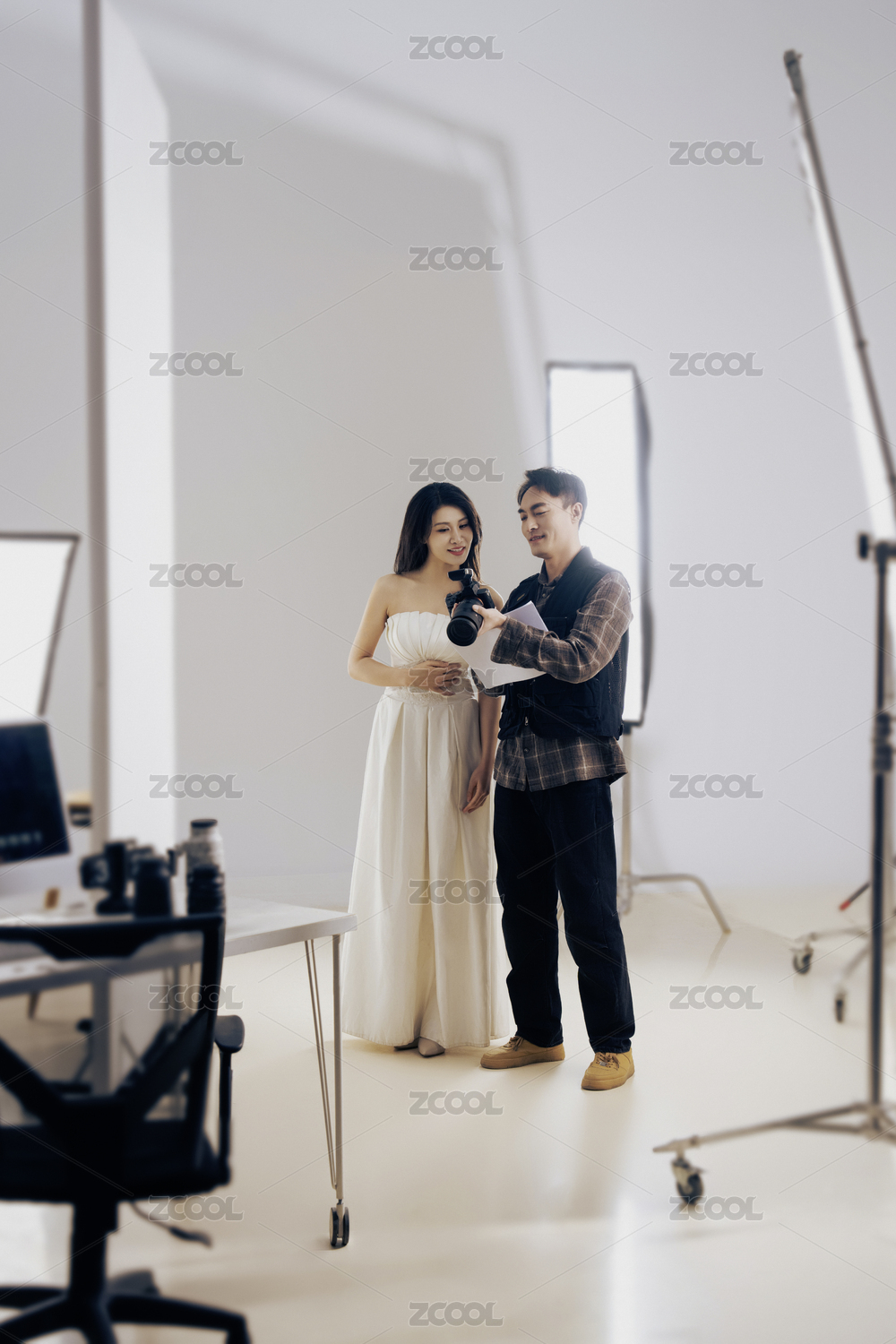 摄影,人物,互动,青年女性,青年男性,亚洲人,灯光设备,摄影棚,专注,现代