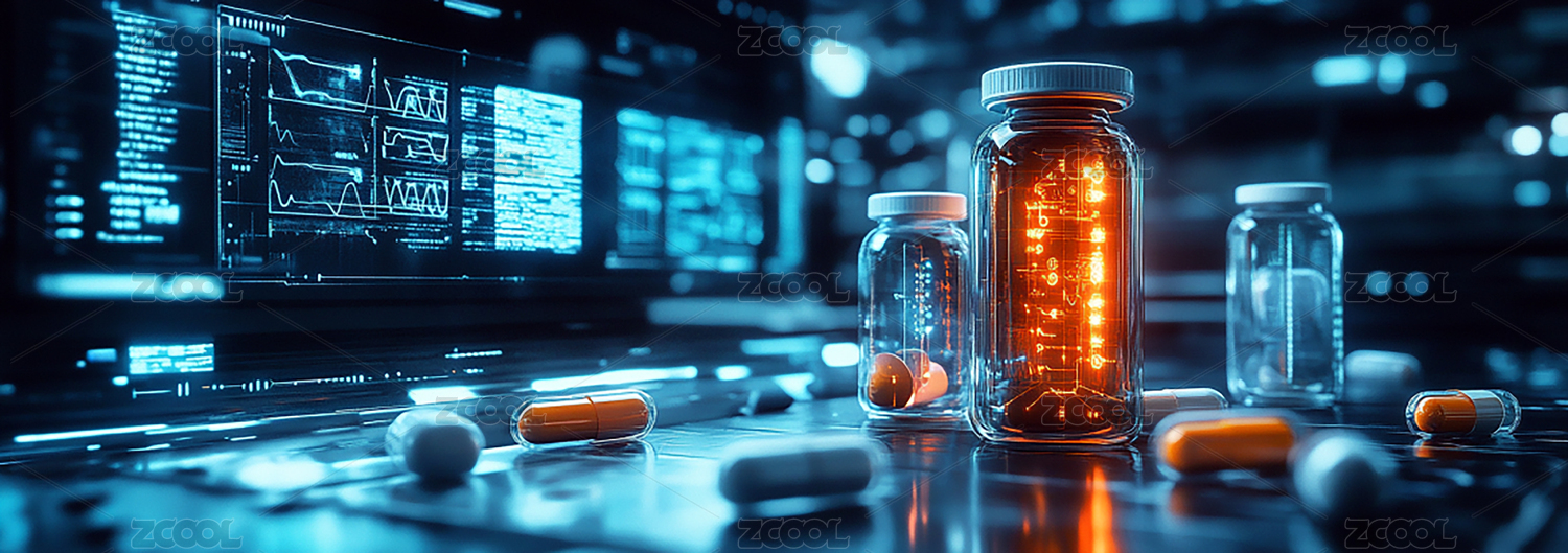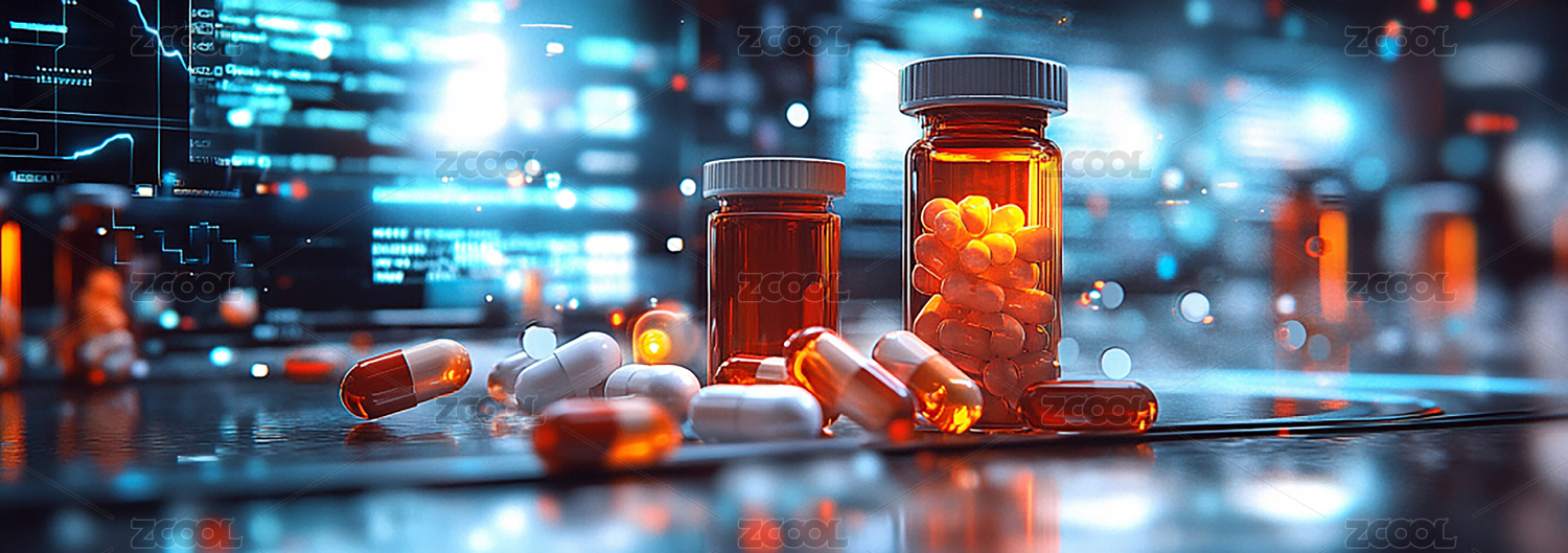 药片和药瓶全息投影