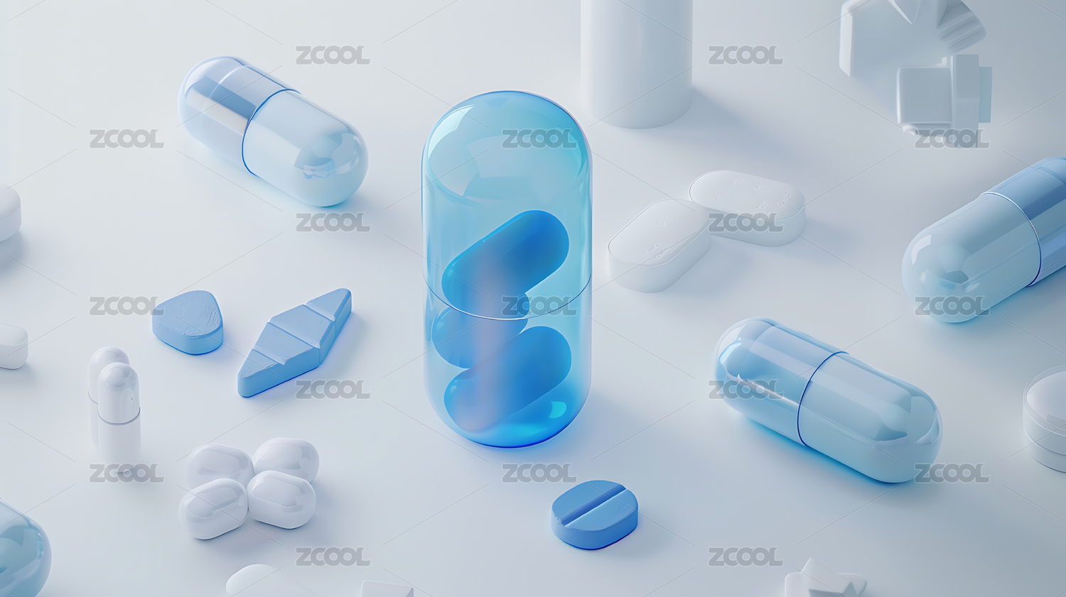 透明胶囊与蓝色液体
