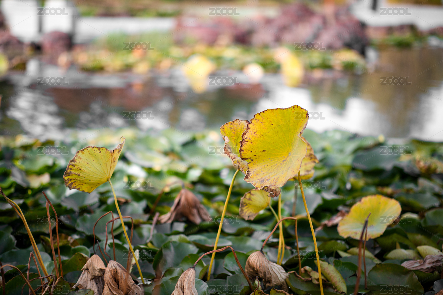 荷叶,枯萎,深秋,植物,池塘,荷塘,水,水域,水面,自然