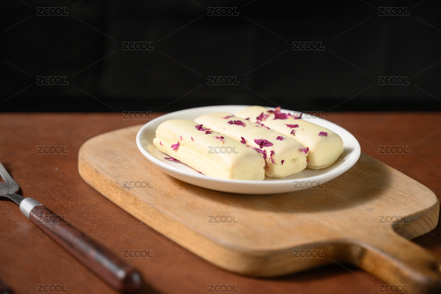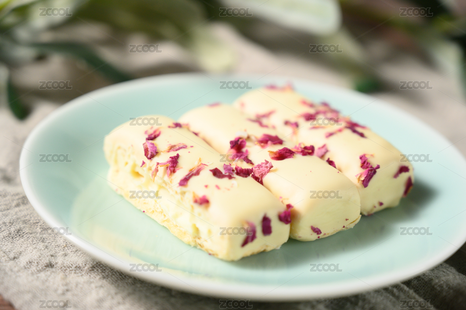 桌面上的盘子里的美味可口的松塔千层酥