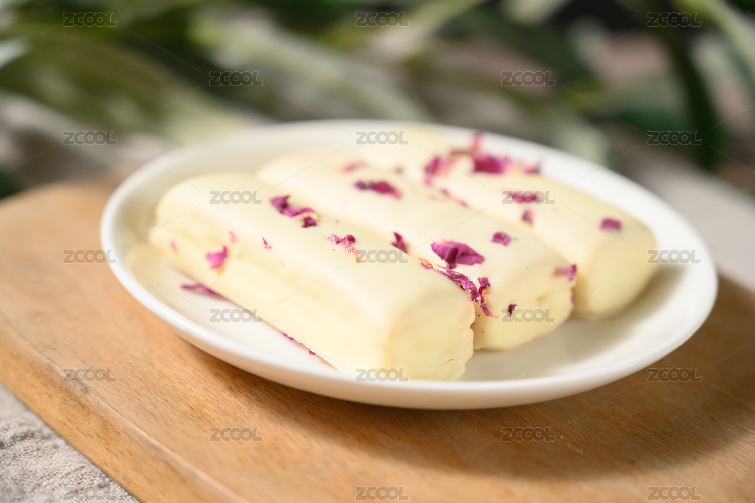 桌面上的盘子里的美味可口的松塔千层酥