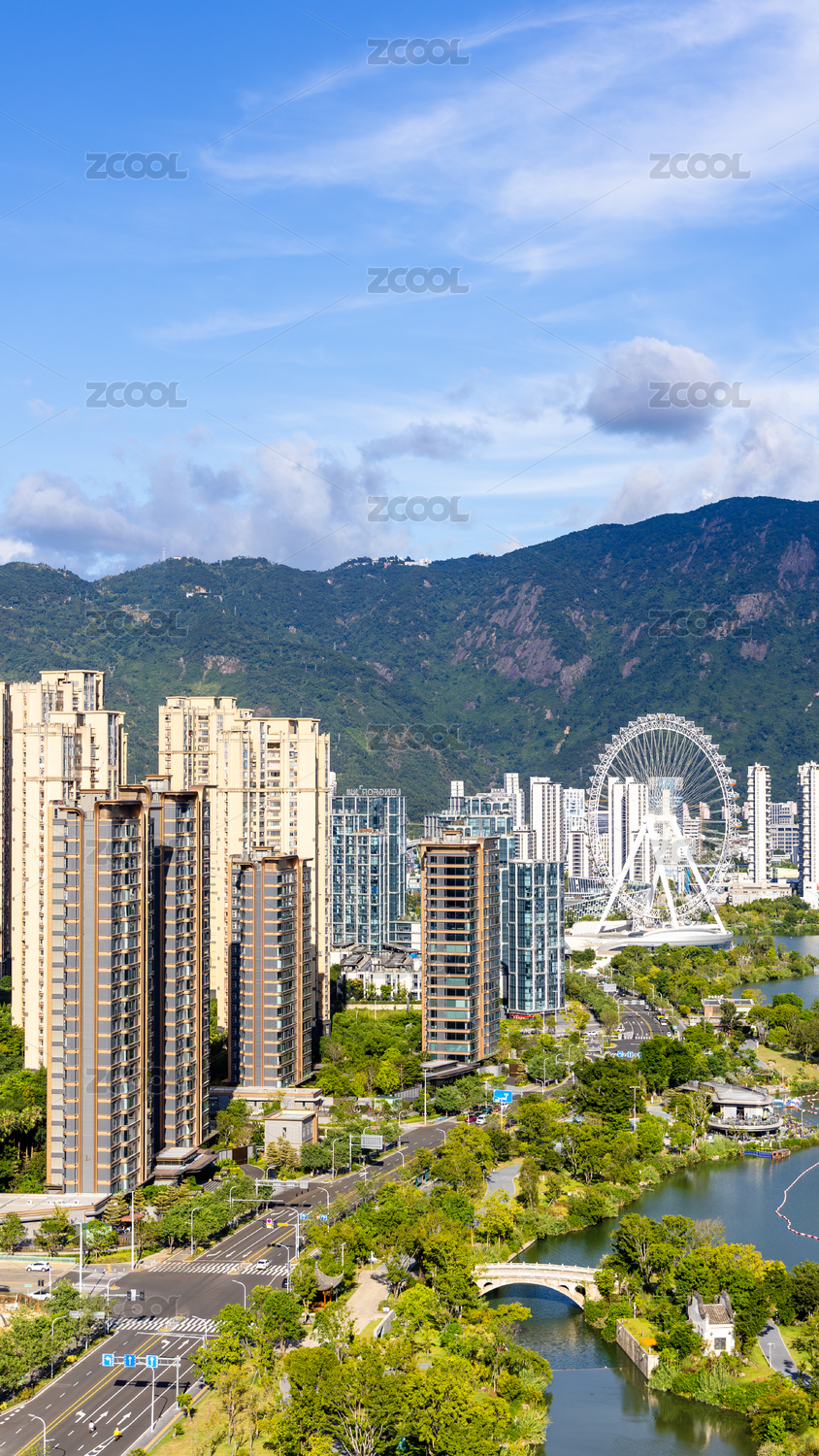 福州,城市,建筑,公园,晋安湖公园,城市风光,蓝天,湖泊